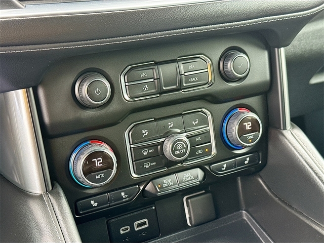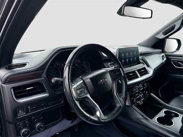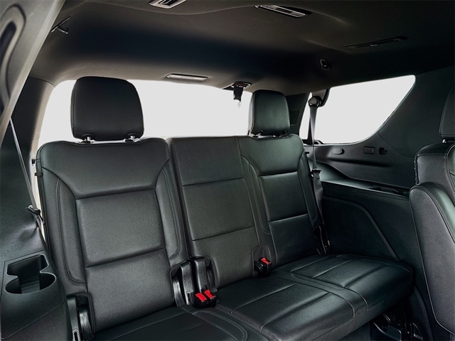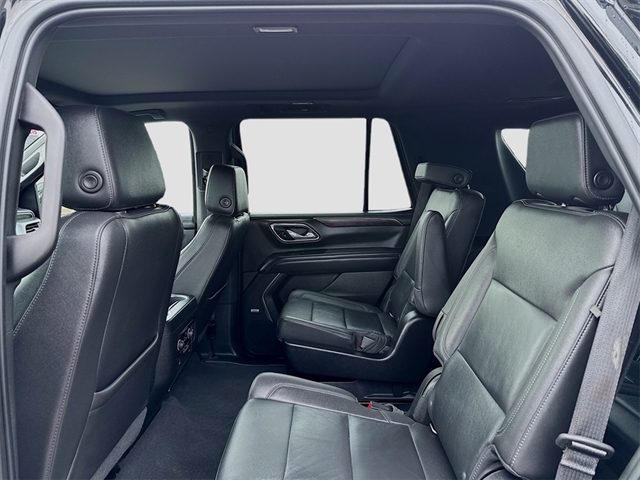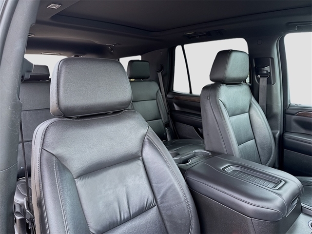 4WD, Black Leather, 10-Way Power Driver & Passenger Seat Adjusters, 1st & 2nd Row Color-Keyed Carpeted Floor Mats, 2 USB Data Ports, 2-Speed Active Electronic AutoTrac Transfer Case, 2nd Row Manual Bucket Seats, 3.23 Rear Axle Ratio, 3rd row seats: split-bench, 4-Wheel Disc Brakes, 9 Speakers, ABS brakes, Air Conditioning, Alloy wheels, AM/FM radio: SiriusXM with 360L, Apple CarPlay/Android Auto, Auto High-beam Headlights, Auto-Dimming Inside Rear-View Mirror, Auto-dimming Rear-View mirror, Automatic temperature control, Black Tubular Assist Steps, Bose 9-Speaker Stereo Audio System Feature, Brake assist, Bright Front & Rear Door Sill Plates, Bumpers: body-color, Color-Keyed Carpeting Floor Covering, Compass, Delay-off headlights, Driver & Front Outboard Passenger Airbags, Driver door bin, Driver vanity mirror, Dual front impact airbags, Dual front side impact airbags, Dual-Pane Power Panoramic Sunroof, Electronic Stability Control, Emergency communication system: OnStar and Chevrolet connected services capable, Floor Console w/Storage Area, Four wheel independent suspension, Front anti-roll bar, Front Bucket Seats, Front Center Armrest, Front dual zone A/C, Front High-Approach Angle Fascia, Front High-Back Reclining Bucket Seats, Front reading lights, Fully automatic headlights, Garage door transmitter, Hands-Free Rear Power Programmable Liftgate, HD Radio, Heated door mirrors, Heated Driver & Front Passenger Seats, Heated front seats, Hill Descent Control, Illuminated entry, Infotainment Display, Leather Seat Trim, Leather steering wheel, Leather-Wrapped Steering Wheel, LED Daytime Running Lamps, License Plate Front Mounting Package, Low tire pressure warning, Memory seat, Memory Settings for Driver, Not Equipped w/Automatic Stop/Start, Not Equipped w/Steering Column Lock, Not Equipped w/Wireless Charging, Occupant sensing airbag, Outside temperature display, Overhead airbag, Overhead console, Panic alarm, Passenger door bin, Passenger vanity mirror, Power door mirrors, Power driver seat, Power Liftgate, Power passenger seat, Power steering, Power windows, Preferred Equipment Group 2Z7, Premium audio system: Chevrolet Infotainment 3, Premium Smooth Ride Suspension, Radio: Chevrolet Infotainment 3 Plus System, Rain sensing wipers, Rear air conditioning, Rear anti-roll bar, Rear reading lights, Rear seat center armrest, Rear window defroster, Rear window wiper, Red Horizontal-Mounted Recovery Hooks, Remote keyless entry, Remote Start, Roof rack: rails only, Security system, SiriusXM Radio w/360L, Speed control, Speed-sensing steering, Split folding rear seat, Spoiler, Steering wheel mounted audio controls, Tachometer, Telescoping steering wheel, Tilt steering wheel, Traction control, Trip computer, Universal Home Remote, Variably intermittent wipers, Voltmeter, Wheels: 20`` x 9`` Machined Aluminum, 4WD, Black Leather.