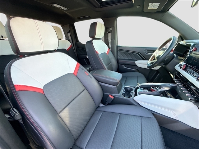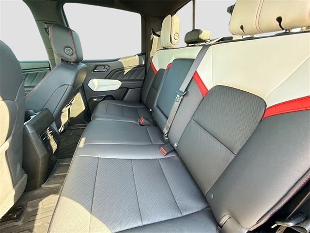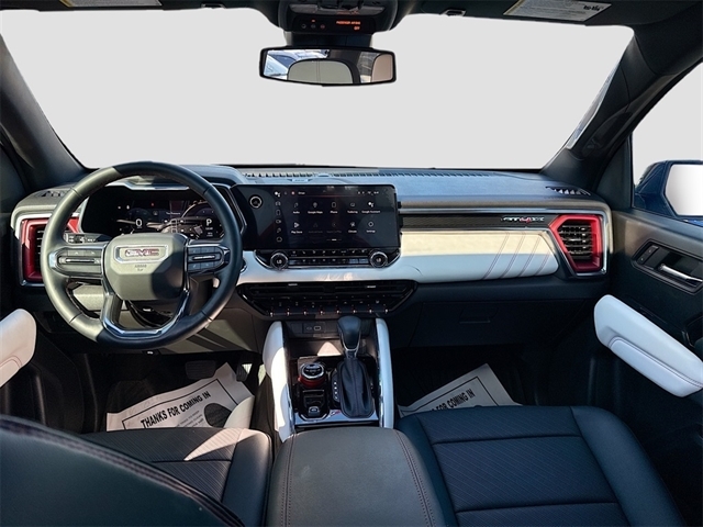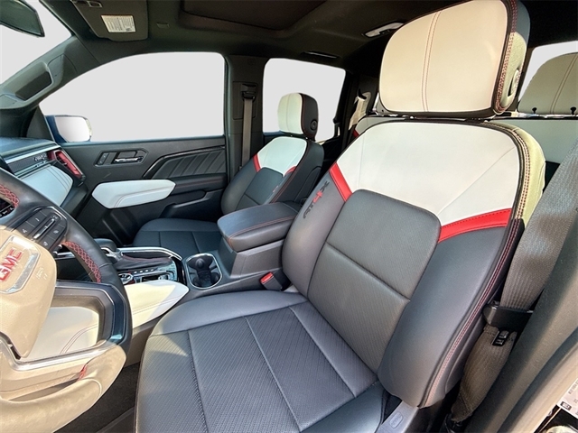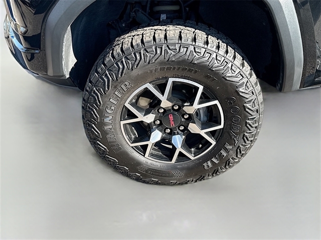 4WD, 120-Volt Bed Mounted Power Outlet, 2 1st Row USB Charge/Data Ports, 2 Rear USB Ports in Center Console (Charge-Only), 220 Amps Alternator, 3.42 Rear Axle Ratio, 4-Wheel Disc Brakes, 6-Way Power Passenger Seat Adjuster, 7 Speakers, 8-Way Power Driver Seat Adjuster, ABS brakes, Adaptive Cruise Control, Air Conditioning, Alloy wheels, AM/FM radio: SiriusXM, Apple CarPlay/Android Auto, Auto High-beam Headlights, Auto-dimming Rear-View mirror, Automatic Emergency Braking, Automatic Stop/Start, Automatic temperature control, Blind Zone Steering Assist, Brake assist, Bumpers: body-color, Canyon Pro Safety, Compass, Delay-off headlights, Driver & Front Passenger Illuminated Visors, Driver & Front Passenger Ventilated Seats, Driver door bin, Driver Memory, Driver Mode Selector, Driver Seatback Map Pocket, Driver vanity mirror, Driver-Selectable Full-Locking Front Differential, Driver-Selectable Full-Locking Rear Differential, Dual front impact airbags, Dual front side impact airbags, Dual-Zone Automatic Air Conditioning, Electronic Stability Control, EZ-Lift & Lower Tailgate, Following Distance Indicator, Forward Collision Alert, Front anti-roll bar, Front Bucket Seats, Front Center Armrest, Front dual zone A/C, Front fog lights, Front LED Fog Lamps, Front License Plate Kit, Front Passenger Seatback Map Pocket, Front Pedestrian & Bicyclist Braking, Front reading lights, Front wheel independent suspension, HD Surround Vision, Heads-Up Display, Heated door mirrors, Heated Driver & Front Passenger Seats, Heated front seats, Heated Power-Adjustable Outside Mirrors, Heated Steering Wheel, Heated steering wheel, Illuminated entry, Inside Rear-View Auto-Dimming Mirror, Integrated Trailer Brake Controller, IntelliBeam Automatic High Beam On/Off, Interior Overhead Courtesy Light w/Dual Reading Lamp, Lane Keep Assist w/Lane Departure Warning, Low tire pressure warning, Manual Rear-Sliding Window, Memory seat, Multicolor 6.3`` Diagonal Head-Up Display, MultiStow Tailgate, Navigation System, Occupant sensing airbag, Outside temperature display, Overhead airbag, Overhead console, Panic alarm, Passenger door bin, Passenger vanity mirror, Perforated Leather-Appointed Seat Trim, Power door mirrors, Power Driver Lumbar Control Seat Adjuster, Power driver seat, Power Inner Sliding Glass Sunroof w/Manual Shade, Power Passenger Lumbar Control Seat Adjuster, Power passenger seat, Power steering, Power windows, Preferred Equipment Group 4TX, Premium 7-Speaker Bose Sound System, Radio data system, Radio: 11.3`` Diagonal Premium GMC Infotainment Sys, Rear Center Fold-Down Armrest w/2 Cupholders, Rear Cross Traffic Braking, Rear of Console 120-Volt Power Outlet, Rear Pedestrian Alert, Rear reading lights, Rear seat center armrest, Rear step bumper, Rear window defroster, Rear-Window Electric Defogger, Remote keyless entry, Remote Vehicle Starter System, Safety Alert Seat, Security system, SiriusXM w/360L, Speed control, Speed-sensing steering, Split folding rear seat, Spray-On Bedliner, Steering wheel mounted audio controls, Stop/Start System Disable Button Engine Control, Tachometer, Tailgate Keyed Cylinder Lock, Telescoping steering wheel, Tilt & Telescopic Manual Steering Column, Tilt steering wheel, Traction control, Trailering App System, Trailering Package, Trip computer, Ultrasonic Rear Park Assist, Variably intermittent wipers, Ventilated front seats, Wheels: 17`` x 8`` Black High Gloss Machined Finish, Wireless Apple CarPlay/Wireless Android Auto, Wireless Charging, 4WD.