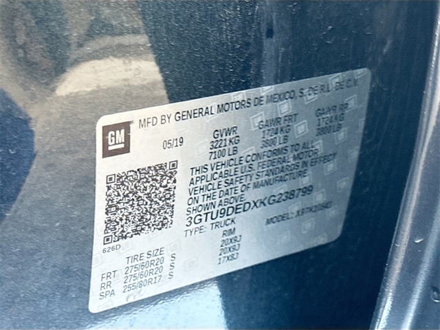 | VIN | 3GTU9DEDXKG238799 |