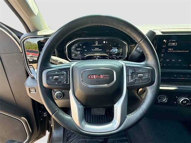 8-Speed Automatic, Black Cloth, 10-Way Power Driver Seat Adjuster w/Lumbar, 120-Volt Bed Mounted Power Outlet, 120-Volt Instrument Panel Power Outlet, 2 Charge/Data USB Ports, 2 Type-C Charge-Only Rear USB Ports, 220 Amp Alternator, 3.42 Rear Axle Ratio, 3.42 Rear Axle Ratio w/Max Trailering Pkg, 4-Way Manual Passenger Seat Adjuster, 4-Wheel Disc Brakes, 6 Speakers, 6-Speaker Audio System Feature, ABS brakes, Air Conditioning, Alloy wheels, AM/FM radio, Apple CarPlay/Android Auto, Auto High-beam Headlights, Auto-Locking Rear Differential, Automatic Emergency Braking, Automatic temperature control, Body Color Header w/Gloss Black Mesh Grille Bars, Body Color Wheel Arch Moldings (LPO), Brake assist, Buckle to Drive, Bumpers: body-color, Cloth Rear Seat w/Storage Package, Cloth Seat Trim, Color-Keyed Carpeting Floor Covering, Compass, Deep-Tinted Glass, Delay-off headlights, Driver door bin, Driver vanity mirror, Dual front impact airbags, Dual front side impact airbags, Electric Rear-Window Defogger, Electrical Steering Column Lock, Electronic Stability Control, Emergency communication system: OnStar and GMC connected services capable, Following Distance Indicator, Forward Collision Alert, Front 40/20/40 Split-Bench Seat, Front anti-roll bar, Front Center Armrest w/Storage, Front dual zone A/C, Front fog lights, Front Frame-Mounted Black Recovery Hooks, Front License Plate Kit, Front Pedestrian Braking, Front reading lights, Front Rubberized-Vinyl Floor Mats, Front wheel independent suspension, Fully automatic headlights, GMC Connected Access Capable, GMC MultiPro Tailgate Step Lights (LPO), HD Rear Vision Camera, Heated door mirrors, Heated Driver & Front Outboard Passenger Seating, Heated front seats, Heated steering wheel, High Capacity Suspension Package, Hitch Guidance, Illuminated entry, IntelliBeam Automatic High Beam On/Off, Keyless Open & Start, Lane Keep Assist w/Lane Departure Warning, LED Cargo Area Lighting, Low tire pressure warning, Manual Tilt-Wheel & Telescoping Steering Column, Navigation System, Not Equipped w/Steering Column Lock, Occupant sensing airbag, OnStar & GMC Connected Services Capable, Outside temperature display, Overhead airbag, Overhead console, Panic alarm, Passenger door bin, Passenger vanity mirror, Power Door Locks, Power door mirrors, Power driver seat, Power Front Windows w/Driver Express Up/Down, Power Front Windows w/Passenger Express Down, Power Rear Windows w/Express Down, Power steering, Power windows, Preferred Equipment Group 3SB, Premium audio system: GMC Infotainment System, Push Button Start, Radio data system, Radio: Premium GMC Infotainment Audio System, Rear reading lights, Rear Rubberized-Vinyl Floor Mats, Rear seat center armrest, Rear step bumper, Rear Underseat Storage (LPO), Rear window defroster, Remote keyless entry, Remote Vehicle Starter System, Security system, SiriusXM w/360L, Speed control, Speed-sensing steering, Split folding rear seat, Steering Wheel Audio Controls, Steering wheel mounted audio controls, Tachometer, Telescoping steering wheel, Theft Deterrent System (Unauthorized Entry), Tilt steering wheel, Traction control, Trailering Package, Trip computer, Variably intermittent wipers, Voltmeter, Wheels: 20`` x 9`` High Gloss Black Painted Aluminum, Wi-Fi Hotspot Capable, Wireless Phone Projection, 8-Speed Automatic, Black Cloth.