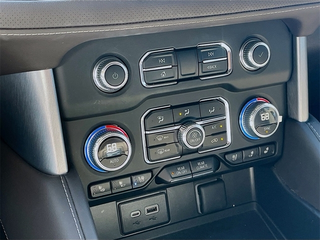 2 Presets For Outside Rearview Mirrors, 2 Presets For Power Driver Seat, 3.23 Rear Axle Ratio, 3rd Row 60/40 Power-Folding Split-Bench Seat, 3rd row seats: split-bench, 4-Wheel Disc Brakes, 9 Speakers, ABS brakes, Adaptive Cruise Control, Air Conditioning, Alloy wheels, AM/FM radio: SiriusXM with 360L, AM/FM Stereo, Apple CarPlay/Android Auto, Auto High-beam Headlights, Auto-dimming Rear-View mirror, Automatic Emergency Braking, Automatic temperature control, Bodyside moldings, Bose 9-Speaker Stereo Audio System Feature, Brake assist, Bright Chrome Bodyside Moldings, Bright Front & Rear Door Sill Plates, Bumpers: body-color, Chrome Door Handles w/Body-Color Strip, Compass, Delay-off headlights, Driver door bin, Driver vanity mirror, Dual front impact airbags, Dual front side impact airbags, Electronic Stability Control, Emergency communication system: OnStar and GMC connected services capable, Enhanced Automatic Emergency Braking, Following Distance Indicator, Forward Collision Alert, Four wheel independent suspension, Front & Rear Park Assist, Front anti-roll bar, Front Bucket Seats, Front Center Armrest, Front dual zone A/C, Front fog lights, Front Pedestrian Braking, Front reading lights, Fully automatic headlights, Garage door transmitter, Hands-Free Power Programmable Rear Liftgate, HD Surround Vision, Heated & Ventilated Driver & Front Passenger Seats, Heated 2nd Row Outboard Position Seats, Heated door mirrors, Heated Driver & Front Passenger Seats, Heated front seats, Heated Steering Wheel, Illuminated entry, Inside Rear-View Auto-Dimming Mirror, IntelliBeam Automatic High Beam On/Off, Lane Change Alert w/Side Blind Zone Alert, Lane Keep Assist w/Lane Departure Warning, License Plate Front Mounting Package, Low tire pressure warning, Memory seat, Navigation System, Occupant sensing airbag, Outside Heated Power-Adjustable Mirrors, Outside temperature display, Overhead airbag, Overhead console, Panic alarm, Passenger door bin, Passenger vanity mirror, Perforated Leather-Appointed Seating, Power door mirrors, Power driver seat, Power Liftgate, Power passenger seat, Power Release 2nd Row 60/40 Split-Folding Bench Seat, Power steering, Power Tilt & Telescopic Steering Column, Power windows, Preferred Equipment Group 4SA, Premium Smooth Ride Suspension, Rain sensing wipers, Rear air conditioning, Rear anti-roll bar, Rear Cross Traffic Alert, Rear Pedestrian Alert, Rear reading lights, Rear seat center armrest, Rear window defroster, Rear window wiper, Remote keyless entry, Roof rack: rails only, Safety Alert Seat, Security system, SiriusXM w/360L, SLT Luxury Package, Speed control, Speed-sensing steering, Split folding rear seat, Spoiler, Steering wheel mounted audio controls, Tachometer, Telescoping steering wheel, Tilt steering wheel, Traction control, Trip computer, Universal Home Remote, Variably intermittent wipers, Ventilated front seats, Voltmeter, Wheels: 20`` x 9`` 6-Spoke Polished Aluminum, Wheels: 22`` Multi-Spoke Gloss Black (LPO) (SRV), Wheels: 22`` x 9`` Steel Interim (LPO), Wireless Charging. Recent Arrival!
