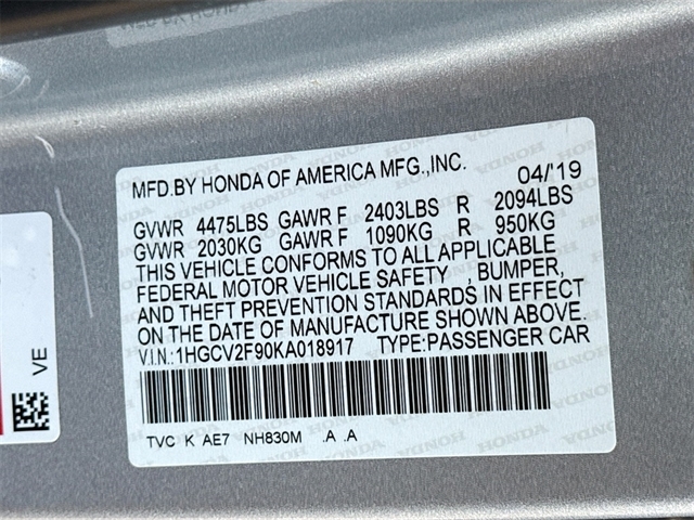 Black w/Leather-Trimmed Seats, 10 Speakers, 4-Wheel Disc Brakes, ABS brakes, Adaptive suspension, Air Conditioning, Alloy wheels, AM/FM radio: SiriusXM, Apple CarPlay/Android Auto, Auto High-beam Headlights, Auto-dimming Rear-View mirror, Automatic temperature control, Blind Spot Information (BSI) System warning, Brake assist, Bumpers: body-color, Compass, Delay-off headlights, Driver door bin, Driver vanity mirror, Dual front impact airbags, Dual front side impact airbags, Electronic Stability Control, Emergency communication system: HondaLink, Exterior Parking Camera Rear, Forward collision: Collision Mitigation Braking System (CMBS) + FCW mitigation, Four wheel independent suspension, Front anti-roll bar, Front Bucket Seats, Front Center Armrest, Front dual zone A/C, Front fog lights, Front reading lights, Fully automatic headlights, Garage door transmitter: HomeLink, Heads-Up Display, Heated & Ventilated Front Bucket Seats, Heated door mirrors, Heated front seats, Heated rear seats, Illuminated entry, Knee airbag, Leather Shift Knob, Leather steering wheel, Leather-Trimmed Seats, Low tire pressure warning, Memory seat, Navigation System, Occupant sensing airbag, Outside temperature display, Overhead airbag, Overhead console, Panic alarm, Passenger door bin, Passenger vanity mirror, Power door mirrors, Power driver seat, Power moonroof, Power passenger seat, Power steering, Power windows, Radio data system, Radio: 450-Watt AM/FM/HD Premium Audio System, Rain sensing wipers, Rear anti-roll bar, Rear seat center armrest, Rear window defroster, Remote keyless entry, Security system, Speed control, Speed-sensing steering, Speed-Sensitive Wipers, Split folding rear seat, Steering wheel mounted audio controls, Tachometer, Telescoping steering wheel, Tilt steering wheel, Traction control, Trip computer, Turn signal indicator mirrors, Variably intermittent wipers, Ventilated front seats, Wheels: 19`` Machine-Finished Alloy w/Gray Inserts, Black w/Leather-Trimmed Seats.
