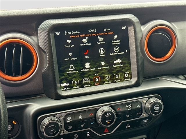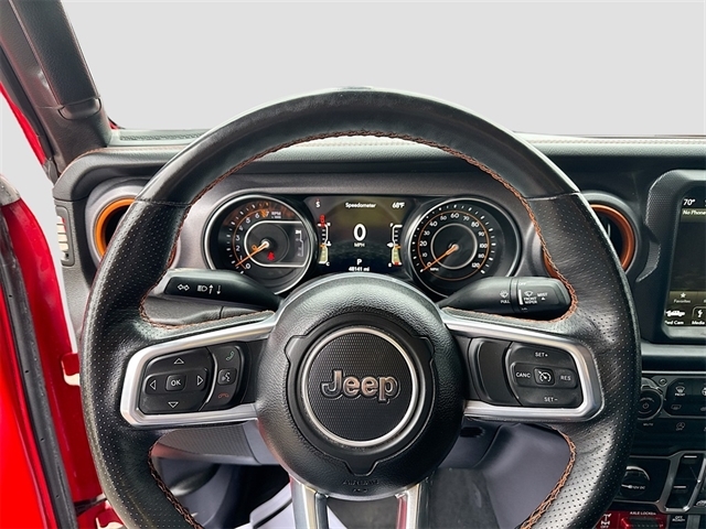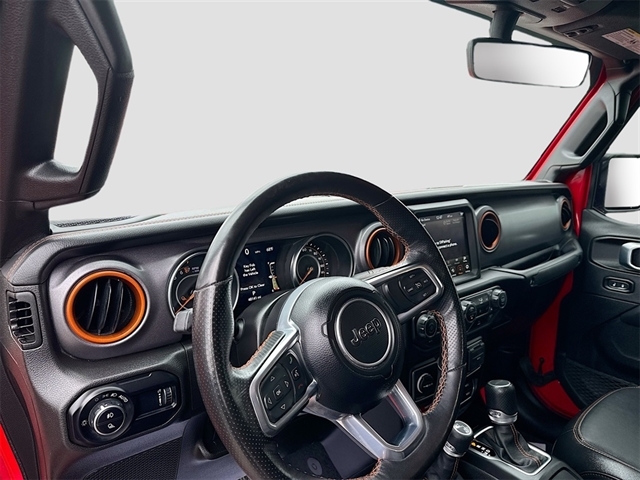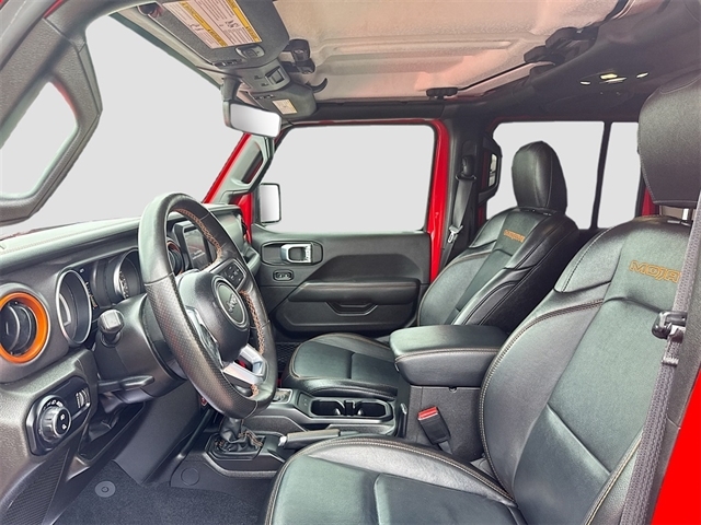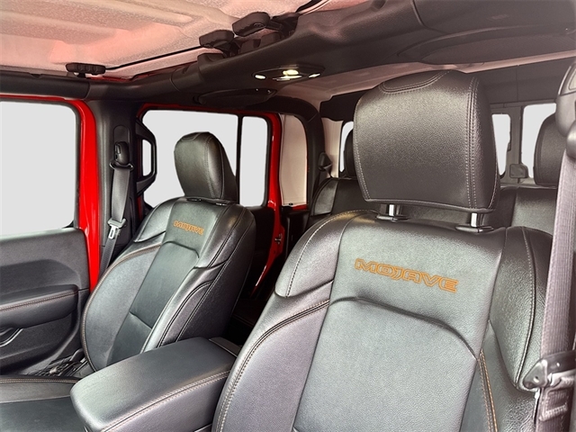 240 Amp Alternator, 4-Wheel Disc Brakes, 4.10 Rear Axle Ratio, 9 Speakers, 97 MPH Vehicle Max Speed Calibration, ABS brakes, Air Conditioning, Alloy wheels, AM/FM radio: SiriusXM, Apple CarPlay/Android Auto, Auto-dimming Rear-View mirror, Automatic temperature control, Auxiliary Switch Group, Auxiliary Switches, Body Color 3-Piece Hard Top, Body Color Fender Flares (2-Piece), Brake assist, Class IV Receiver Hitch, Cold Weather Group, Compass, Daytime Running Lamps LED Accents, Delay-off headlights, Driver door bin, Driver vanity mirror, Dual front impact airbags, Dual front side impact airbags, Electronic Stability Control, Emergency communication system, Freedom Panel Storage Bag, Front anti-roll bar, Front Bucket Seats, Front Center Armrest w/Storage, Front dual zone A/C, Front fog lights, Front LED Fog Lamps, Front License Plate Bracket, Front reading lights, Fully automatic headlights, Garage door transmitter, Heated door mirrors, Heated Front Seats, Heated Steering Wheel, Heavy Duty Suspension w/Gas Shocks, Heavy-Duty Engine Cooling, Illuminated entry, Integrated Off-Road Camera, Integrated roll-over protection, Leather steering wheel, LED Lighting Group, LED Park Turn Lamps, LED Premium Reflector Headlamps, LED Taillamps, Low tire pressure warning, Navigation System, No Soft Top, Occupant sensing airbag, Outside temperature display, Panic alarm, ParkView Rear Back-Up Camera, Passenger door bin, Passenger vanity mirror, Power door mirrors, Power steering, Power windows, Premium Cloth Seats w/Sport Bolsters, Quick Order Package 24D Mojave, Radio data system, Radio: Uconnect 4C Nav w/8.4`` Display, Rear anti-roll bar, Rear reading lights, Rear Sliding Window, Rear Window Defroster, Remote keyless entry, Security system, Speed control, Split folding rear seat, Steering wheel mounted audio controls, Tachometer, Telescoping steering wheel, Tilt steering wheel, Traction control, Trailer Hitch Zoom, Trailer Tow Package, Trip computer, Variably intermittent wipers, Voltmeter, Wheels: 17`` x 7.5`` Low Gloss Black Aluminum.