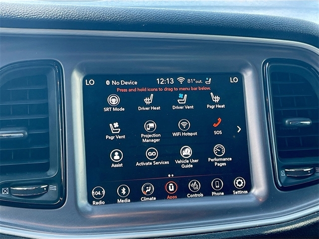 1-Yr SiriusXM Guardian Trial, 230MM Rear Axle, 3.09 Rear Axle Ratio, 4-Wheel Disc Brakes, 4G LTE Wi-Fi Hot Spot, 6 Speakers, 8.4`` Touchscreen Display, ABS brakes, Air Conditioning, Alloy wheels, AM/FM radio: SiriusXM, Anti-whiplash front head restraints, Apple CarPlay, Apple CarPlay/Android Auto, Auto-dimming Rear-View mirror, Automatic temperature control, Blind Spot & Cross Path Detection, Brake assist, Bumpers: body-color, Center Rear 3-Point Seat Belt, Child Seat Upper Tether Anchorages, Compass, Delay-off headlights, Door Trim Panel w/Ambient Lighting, Driver Convenience Group, Driver door bin, Driver vanity mirror, Dual front impact airbags, Dual front side impact airbags, Electronic Stability Control, Emergency communication system: SiriusXM Guardian, Four wheel independent suspension, Front anti-roll bar, Front Bucket Seats, Front Center Armrest, Front dual zone A/C, Front fog lights, Front Passenger Seat, Front Passenger Seat Belt Alert, Front reading lights, Fully automatic headlights, Garage door transmitter, Google Android Auto, GPS Antenna Input, HD Radio, Heated door mirrors, Heated front seats, Heated Steering Wheel, Heated steering wheel, High-Intensity Discharge Headlamps, Illuminated entry, Integrated Center Stack Radio, Integrated Voice Command w/Bluetooth, Leather Shift Knob, Low tire pressure warning, Media Hub (2 USB, AUX), Outside temperature display, Overhead airbag, Overhead console, Panic alarm, ParkView Rear Back-Up Camera, Passenger door bin, Passenger vanity mirror, Plus Package, Power door mirrors, Power driver seat, Power Multi-Function Foldaway Mirrors, Power steering, Power windows, Quick Order Package 24G R/T Scat Pack, Radio data system, Radio: Uconnect 4C w/8.4`` Display, Rear anti-roll bar, Rear reading lights, Rear seat center armrest, Rear window defroster, Remote keyless entry, Rhombi 2-Pc Wheel Center Cap, Scat Pack Logo Houndstooth Seat, Security system, SiriusXM Satellite Radio, Speed control, Speed-sensing steering, Split folding rear seat, Spoiler, Sport steering wheel, Steering wheel mounted audio controls, Tachometer, Telescoping steering wheel, Tilt steering wheel, Traction control, Trip computer, USB Host Flip, Variably intermittent wipers, Wheels: 20`` x 9.0`` Black Noise. Recent Arrival!