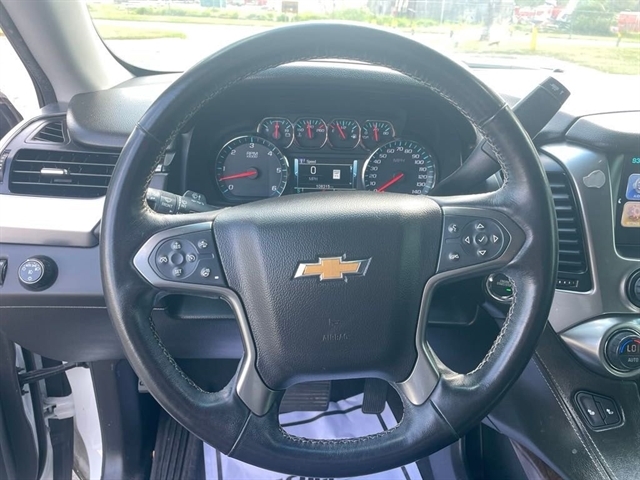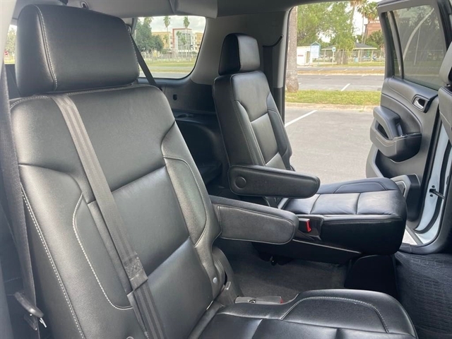 12-Volt Auxiliary Power Outlet (5), 18`` x 8.5`` High-Polished Aluminum Finish Wheels, 1st & 2nd Row Color-Keyed Carpeted Floor Mats, 2nd Row 60/40 Split-Folding Manual Bench, 2nd Row Pwr Release 60/40 Split Folding Bench Seat, 3.08 Rear Axle Ratio, 3rd Row 60/40 Power Fold Split-Bench, 3rd Row DVD Screen, 3rd Row Manual 60/40 Split-Folding Fold Flat Bench, 3rd row seats: split-bench, 4-Wheel Antilock Disc Brakes, 4-Wheel Disc Brakes, 6-Way Power Front Passenger Seat Adjuster, 9 Speakers, ABS brakes, Adjustable pedals, Air Conditioning, All-Weather Floor Liner Package (LPO), Alloy wheels, AM/FM radio: SiriusXM, AM/FM Stereo w/Navigation, Apple CarPlay/Android Auto, Auto High-beam Headlights, Auto-Dimming Inside Rear-View Mirror, Auto-dimming Rear-View mirror, Automatic Emergency Braking, Automatic temperature control, Black Assist Steps, Black Roof Rack Cross Bars, Bose Premium Audio System Feature, Brake assist, Bumpers: body-color, CD player, Color-Keyed Carpeting Floor Covering, Compass, Delay-off headlights, Driver door bin, Driver Inboard & Front Passenger Airbags, Driver vanity mirror, Dual front impact airbags, Dual front side impact airbags, Electronic Cruise Control w/Set & Resume Speed, Electronic Stability Control, Enhanced Driver Alert Package, Extended-Range Remote Keyless Entry, Exterior Parking Camera Rear, Floor Console w/Storage Area, Fog Lamps, Forward Collision Alert, Front & Rear Park Assist, Front anti-roll bar, Front Bucket Seats, Front Center Armrest, Front dual zone A/C, Front reading lights, Front wheel independent suspension, Fully automatic headlights, Garage door transmitter, Hands-Free Power Liftgate, HD Radio, Heated 2nd Row Outboard Seats, Heated door mirrors, Heated Front Reclining Bucket Seats, Heated front seats, Heated Leather Wrapped Steering Wheel, Illuminated entry, IntelliBeam w/Automatic High Beam On/Off, Lane Change Alert w/Side Blind Zone Alert, Lane Keep Assist w/Lane Departure Warning, Leather steering wheel, Leather-Appointed Seat Trim, Leather-Wrapped Steering Wheel, License Plate Front Mounting Package, Low tire pressure warning, Luxury Package, Memory seat, Memory Settings, Occupant sensing airbag, Outside temperature display, Overhead airbag, Overhead console, Panic alarm, Passenger door bin, Passenger vanity mirror, Passive Entry System, Pedal memory, Power door mirrors, Power driver seat, Power Folding & Adjustable Heated Outside Mirrors, Power Liftgate, Power passenger seat, Power Release 2nd Row Bucket Seats, Power steering, Power Tilt & Telescoping Steering Column, Power Tilt-Sliding Sunroof w/Express-Open/Close, Power windows, Power-Adjustable Accelerator & Brake Pedals, Preferred Equipment Group 1LT, Premium Smooth Ride Suspension Package, Push Button Keyless Start, Radio: AM/FM Stereo w/Chevrolet Infotainment, Rain sensing wipers, Rear air conditioning, Rear anti-roll bar, Rear Cross Traffic Alert, Rear Park Assist w/Audible Warning, Rear reading lights, Rear seat center armrest, Rear Seat Entertainment System, Rear window defroster, Rear window wiper, Remote keyless entry, Remote Vehicle Start, Roof-Mounted Luggage Rack Side Rails, Safety Alert Seat, Security system, Single-Slot CD/MP3 Player, SiriusXM Radio, Speed control, Speed-sensing steering, Split folding rear seat, Spoiler, Steering wheel mounted audio controls, Sun, Entertainment & Destinations Package, Tachometer, Telescoping steering wheel, Tilt steering wheel, Traction control, Trip computer, Universal Home Remote, Variably intermittent wipers, Voltmeter, Wheel Locks (Set of 4) (LPO), Wheels: 22`` Premium Painted w/Chrome Inserts.