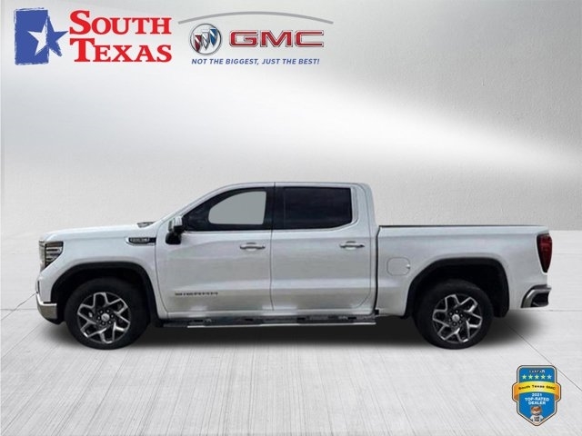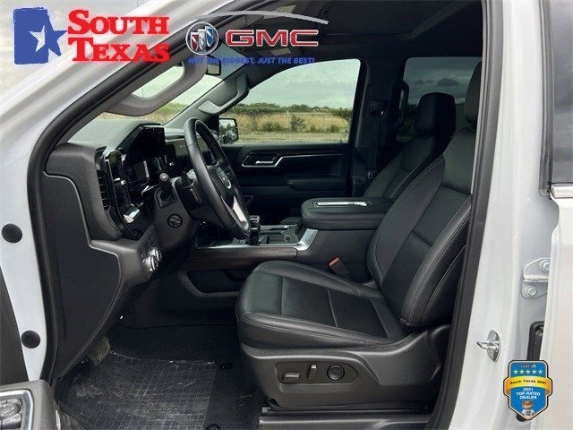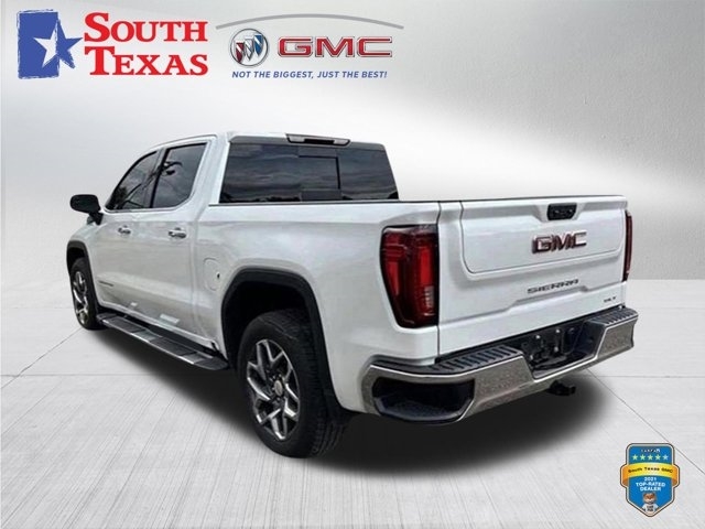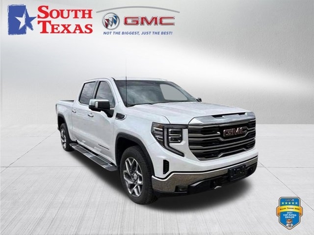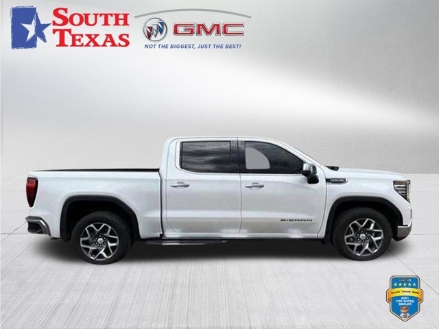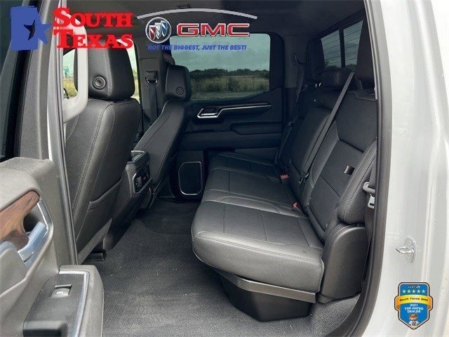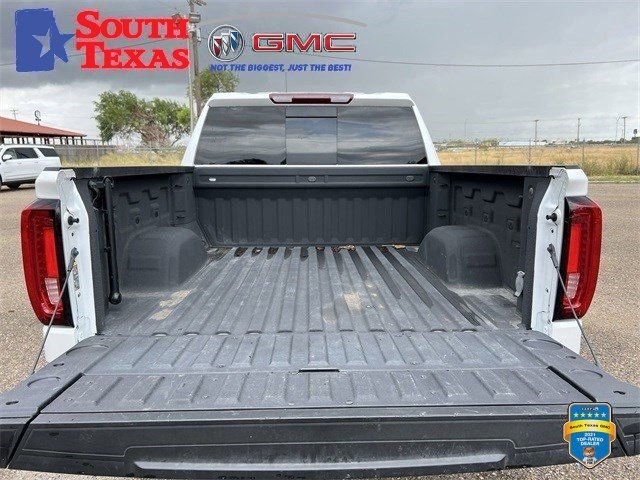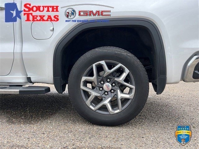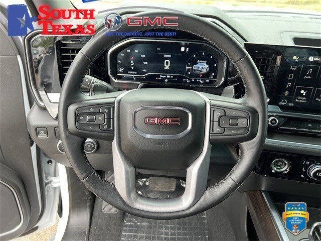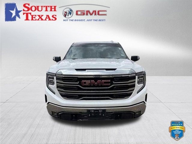 Clean CARFAX. CARFAX One-Owner. White Frost Tricoat 2022 GMC Sierra 1500 SLT RWD 10-Speed Automatic EcoTec3 5.3L V8 WE ARE OPEN FOR ALL YOUR SALES AND SERVICE NEEDS! COMPLETE ONLINE BUYING EXPERIENCE AVAILABLE!CALL 956-661-5000 TO SCHEDULE YOUR CONTACT FREE TEST DRIVE TODAY!10-Speed Automatic, Jet Black Leather, 10-Way Power Driver Seat Adjuster w/Lumbar, 10-Way Power Passenger Seat Adjuster w/Lumbar, 120-Volt Bed Mounted Power Outlet, 120-Volt Instrument Panel Power Outlet, 170 Amp Alternator, 2 Charge/Data USB Ports, 2 Charge/Data USB Ports Inside Center Console, 2 Type-C Charge-Only Rear USB Ports, 20" Polished Aluminum Wheels, 3 Years of OnStar & Connected Services Plan, 3.23 Rear Axle Ratio, 4-Wheel Disc Brakes, 6 Speakers, 6-Speaker Audio System Feature, ABS brakes, Adaptive Cruise Control, Air Conditioning, Alloy wheels, All-Weather Floor Liner (LPO), AM/FM radio: SiriusXM with 360L, AppLink/Apple CarPlay and Android Auto, Auto High-beam Headlights, Auto-dimming door mirrors, Auto-dimming Rear-View mirror, Auto-Locking Rear Differential, Automatic Emergency Braking, Automatic temperature control, Auxiliary External Transmission Oil Cooler, Body Color Wheel Arch Moldings (LPO), Brake assist, Buckle to Drive, Bumpers: chrome, Chrome Header & Chrome Grille Insert Bars, Chrome Wheel To Wheel Assist Steps, Color-Keyed Carpeting Floor Covering, Compass, Deep-Tinted Glass, Delay-off headlights, Driver door bin, Driver Memory, Driver vanity mirror, Dual front impact airbags, Dual front side impact airbags, Electric Rear-Window Defogger, Electrical Steering Column Lock, Electronic Precision Shift, Electronic Stability Control, Emergency communication system: OnStar and GMC Connected Services capable, Floor-Mounted Center Console, Following Distance Indicator, Forward Collision Alert, Front 40/20/40 Split-Bench Seat, Front anti-roll bar, Front Bucket Seats, Front Center Armrest w/Storage, Front dual zone A/C, Front fog lights, Front Frame-Mounted Black Recovery Hooks, Front License Plate Kit, Front Pedestrian Braking, Front Rainsensing Wipers, Front reading lights, Front wheel independent suspension, Fully automatic headlights, GMC Connected Access Capable, GMC MultiPro Tailgate Step Lights (LPO), HD Rear Vision Camera, Heated 2nd Row Outboard Seats, Heated door mirrors, Heated Driver & Front Outboard Passenger Seating, Heated front seats, Heated Steering Wheel, Heated steering wheel, High Capacity Suspension Package, Hitch Guidance, Illuminated entry, IntelliBeam Automatic High Beam On/Off, Keyless Open & Start, Lane Keep Assist w/Lane Departure Warning, LED Cargo Area Lighting, Low tire pressure warning, Manual Tilt-Wheel & Telescoping Steering Column, Memory seat, Navigation System, Not Equip w/Heat & Vent Seat Cushion Blower Motor, Not Equipped w/Steering Column Lock, Occupant sensing airbag, OnStar & GMC Connected Services Capable, Outside temperature display, Overhead airbag, Overhead console, Panic alarm, Passenger door bin, Passenger vanity mirror, Perf Leather-Appointed Front Outboard Seat Trim, Perimeter Lighting, Power Door Locks, Power door mirrors, Power driver seat, Power Front Passenger Windows w/Express Up/Down, Power Front Windows w/Driver Express Up/Down, Power passenger seat, Power Rake & Telescoping Steering Column, Power Rear Windows w/Express Down, Power Sliding Rear Window w/Rear Defogger, Power steering, Power Sunroof, Power windows, Preferred Equipment Group 4SA, Premium audio system: GMC Infotainment System, Premium Bose 7-Speaker Sound System, Push Button Start, Radio data system, Radio: Premium GMC Infotainment Audio System, Rain sensing wipers, Rear reading lights, Rear seat center armrest, Rear step bumper, Rear Underseat Storage (LPO), Rear Wheelhouse Liners, Rear window defroster, Remote keyless entry, Remote Vehicle Starter System, Security system, SiriusXM w/360L, SLT Convenience Package, SLT Preferred Package, Speed control, Speed-sensing steering, Split folding rear seat, Standard S