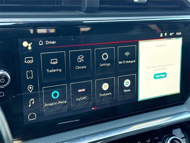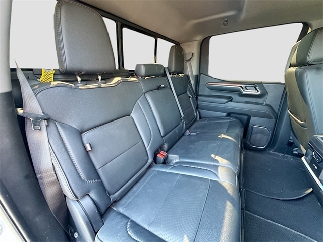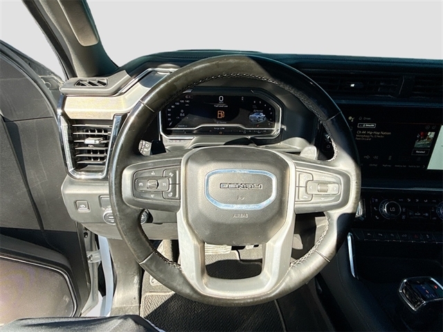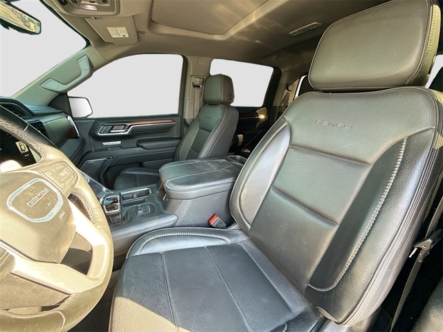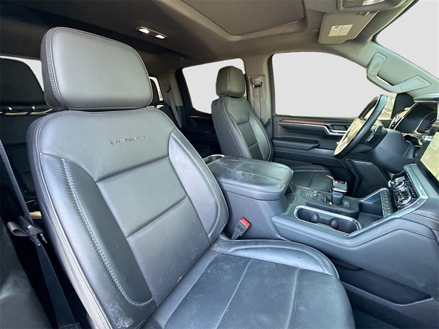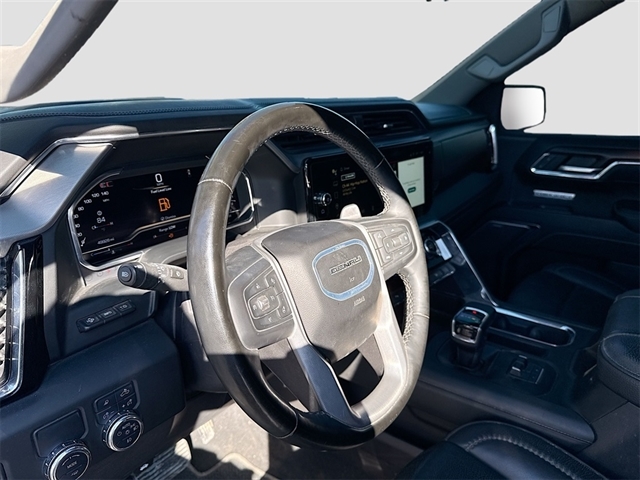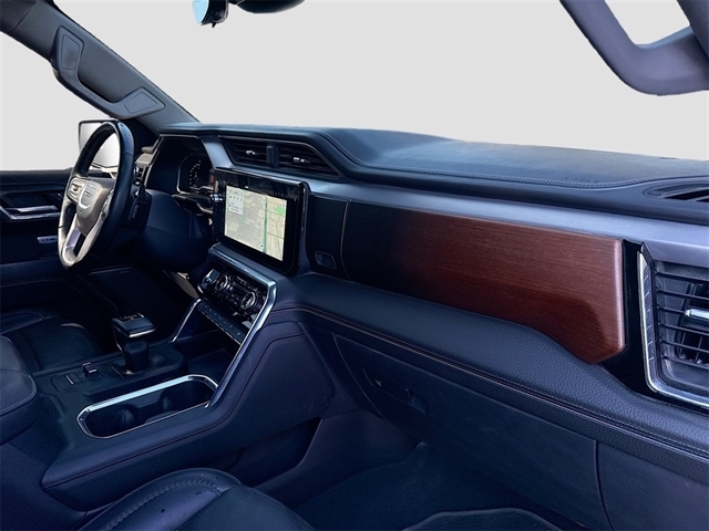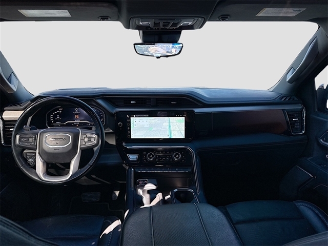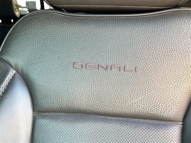 10-Speed Automatic, Jet Black Leather, 12-Way Power Driver Seat Adjuster w/Lumbar, 12-Way Power Passenger Seat Adjuster w/Lumbar, 120-Volt Bed Mounted Power Outlet, 120-Volt Interior Power Outlet, 170 Amp Alternator, 2 Charge/Data USB Ports Inside Center Console, 2 Type-C Charge-Only Rear USB Ports, 2 USB Ports, 3.23 Rear Axle Ratio, 4-Wheel Disc Brakes, 7 Speakers, ABS brakes, Adaptive suspension, Air Conditioning, Alloy wheels, AM/FM radio: SiriusXM with 360L, Apple CarPlay/Android Auto, Auto High-beam Headlights, Auto-dimming door mirrors, Auto-dimming Rear-View mirror, Auto-Locking Rear Differential, Automatic temperature control, Auxiliary External Transmission Oil Cooler, Bed View Camera, Body Color Wheel Arch Moldings (LPO), Brake assist, Buckle to Drive, Bumpers: body-color, Chrome Header w/Signature Denali Chrome Grille, Chrome Recovery Hooks, Chrome Wheel To Wheel Assist Steps, Color-Keyed Carpeting Floor Covering, Compass, Deep-Tinted Glass, Delay-off headlights, Denali Premium Suspension w/Adaptive Ride Control, Denali Reserve Package, Driver door bin, Driver Memory, Driver vanity mirror, Dual front impact airbags, Dual front side impact airbags, Electric Rear-Window Defogger, Electronic Stability Control, Emergency communication system: OnStar and GMC connected services capable, Enhanced Automatic Emergency Braking, Floor-Mounted Center Console, Following Distance Indicator, Forge Perforated Leather Seat Trim, Forward Collision Alert, Front anti-roll bar, Front Bucket Seats, Front Center Armrest, Front dual zone A/C, Front fog lights, Front License Plate Kit, Front Pedestrian Braking, Front Rain-Sensing Wipers, Front reading lights, Front wheel independent suspension, Fully automatic headlights, Garage door transmitter, Genuine wood console insert, Genuine wood dashboard insert, Genuine wood door panel insert, GMC Connected Access Capable, GMC MultiPro Power Steps, GMC MultiPro Tailgate Step Lights (LPO), HD Surround Vision, Heated 2nd Row Outboard Seats, Heated door mirrors, Heated Driver & Front Outboard Passenger Seating, Heated front seats, Heated rear seats, Heated steering wheel, Heavy-Duty Air Filter, Hitch Guidance, Hitch View, Illuminated entry, In-Vehicle Trailering System App, Integrated Trailer Brake Controller, IntelliBeam Automatic High Beam On/Off, Keyless Open & Start, Lane Keep Assist w/Lane Departure Warning, LED Cargo Area Lighting, Low tire pressure warning, Memory seat, Multicolor 15`` Diagonal Head-Up Display, Navigation System, Occupant sensing airbag, OnStar & GMC Connected Services Capable, Outside temperature display, Overhead airbag, Overhead console, Panic alarm, Passenger door bin, Passenger vanity mirror, Perimeter Lighting, Power Door Locks, Power door mirrors, Power driver seat, Power Front Passenger Windows w/Express Up/Down, Power Front Windows w/Driver Express Up/Down, Power passenger seat, Power Rake & Telescoping Steering Column, Power Rear Windows w/Express Down, Power Sliding Rear Window w/Rear Defogger, Power steering, Power Sunroof, Power windows, Preferred Equipment Group 5SA, Premium audio system: GMC Infotainment System, Premium Bose 7-Speaker Sound System, Push Button Start, Radio data system, Radio: Premium GMC Infotainment Audio System, Rain sensing wipers, Rear Camera Mirror, Rear Cross Traffic Braking, Rear Pedestrian Detection, Rear reading lights, Rear seat center armrest, Rear step bumper, Rear Underseat Storage (LPO), Rear Wheelhouse Liners, Rear window defroster, Remote keyless entry, Remote Vehicle Starter System, Safety Alert Seat, Security system, SiriusXM w/360L, Speed control, Speed-sensing steering, Split folding rear seat, Spray-On Pickup Bedliner w/Denali Lo