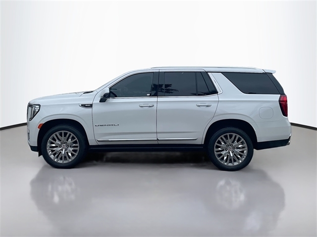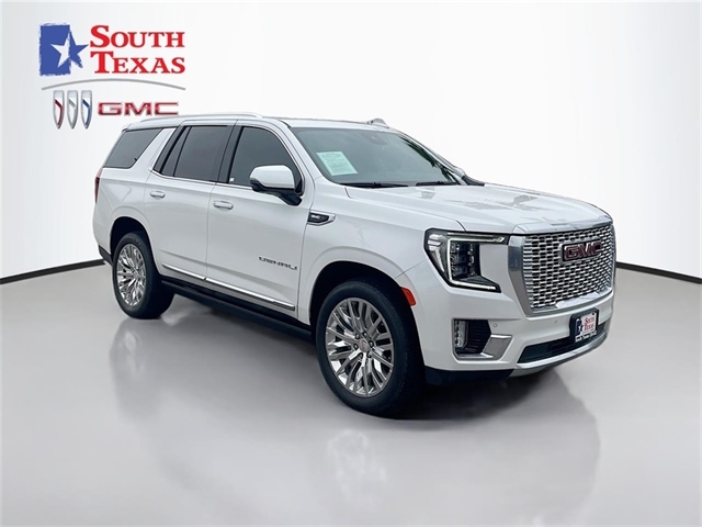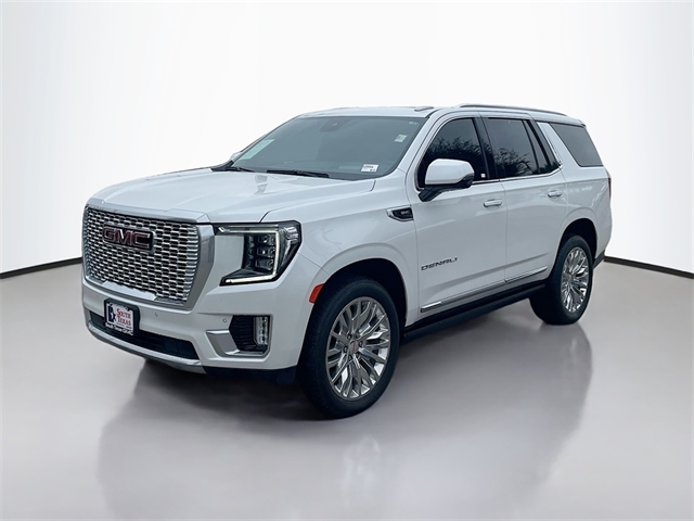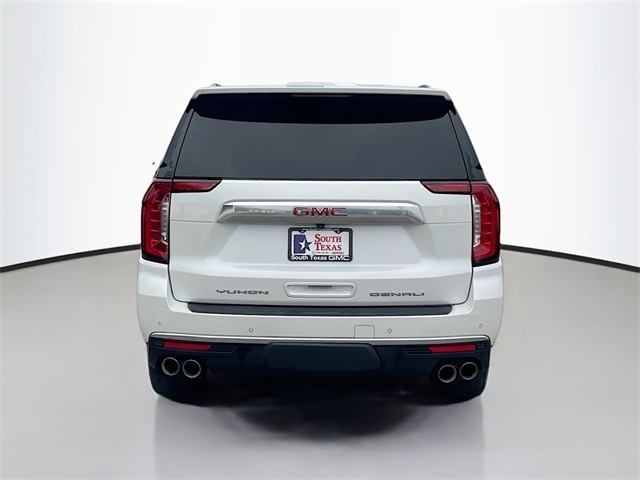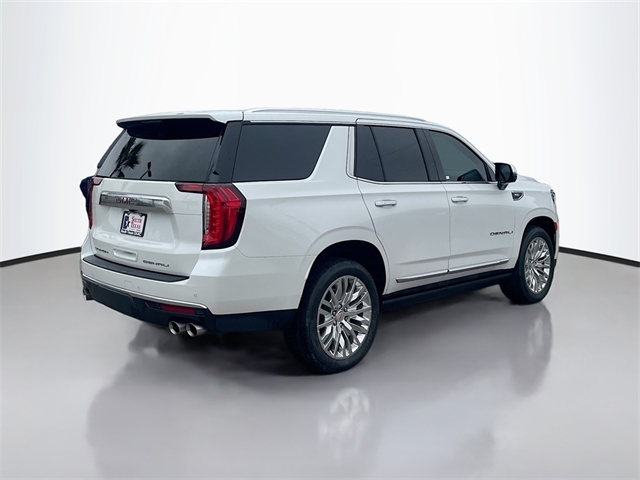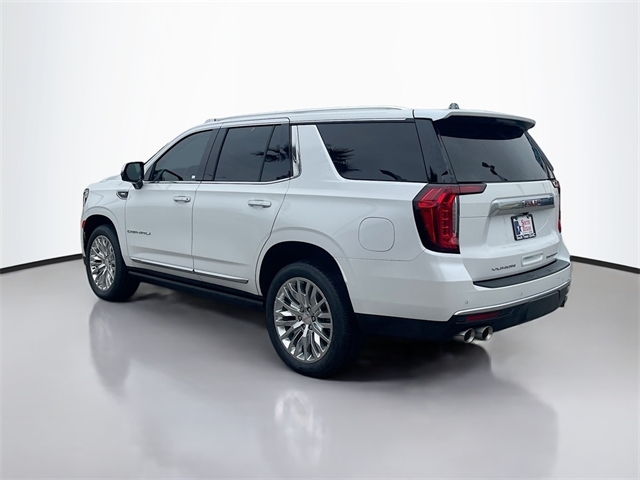 Clean CARFAX. White Frost Tricoat 2023 GMC Yukon Denali RWD 10-Speed Automatic with Overdrive EcoTec3 6.2L V8