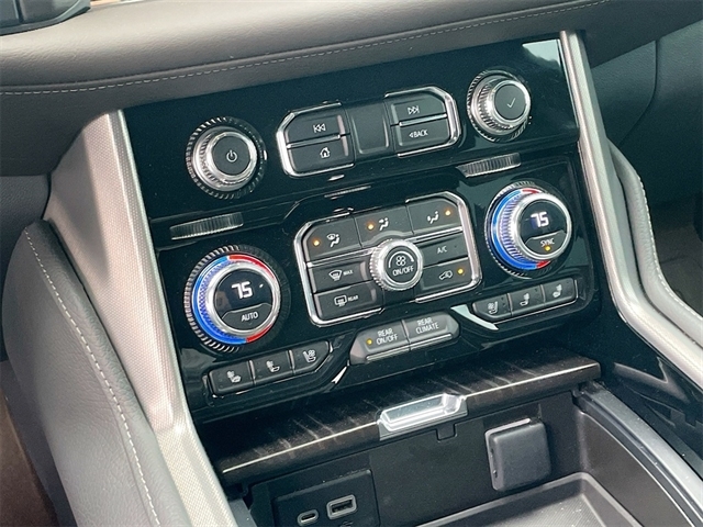 14 Speakers, 15`` Diagonal Multi-Color Head-Up Display, 2 Presets For Outside Rearview Mirrors, 3 Years of GMC Connected Services, 3 Years of OnStar Safety & Security, 3 Years of OnStar Safety & Security (DISC), 3.23 Rear Axle Ratio, 3rd Row 60/40 Power-Folding Split-Bench Seat, 3rd row seats: split-bench, 4-Wheel Disc Brakes, ABS brakes, Adaptive Cruise Control, Adaptive suspension, Air Conditioning, Alloy wheels, AM/FM radio: SiriusXM with 360L, AM/FM Stereo, Apple CarPlay/Android Auto, Auto High-beam Headlights, Auto-dimming door mirrors, Auto-dimming Rear-View mirror, Auto-leveling suspension, Automatic Emergency Braking, Automatic temperature control, Bodyside moldings, Bose 14-Speaker Surround w/CenterPoint, Brake assist, Bright Front & Rear Door Sill Plates, Bumpers: body-color, Chrome Door Handles w/Body-Color Strip, Compass, Delay-off headlights, Driver door bin, Driver vanity mirror, Dual Exhaust System, Dual front impact airbags, Dual front side impact airbags, Dual-Pane Panoramic Power Sunroof, Electronic Stability Control, Emergency communication system: OnStar and GMC connected services capable, Enhanced Automatic Emergency Braking, Floor Console, Following Distance Indicator, Forward Collision Alert, Four wheel independent suspension, Front & Rear Park Assist, Front anti-roll bar, Front Bucket Seats, Front Center Armrest, Front dual zone A/C, Front fog lights, Front Pedestrian Braking, Front reading lights, Fully automatic headlights, Galvano Bodyside Moldings, Garage door transmitter, Hands-Free Power Programmable Rear Liftgate, HD Surround Vision, Heads-Up Display, Heated & Ventilated Driver & Front Passenger Seats, Heated 2nd Row Outboard Position Seats, Heated door mirrors, Heated Driver & Front Passenger Seats, Heated front seats, Heated rear seats, Heated Steering Wheel, Heated steering wheel, Illuminated entry, Inside Rear-View Auto-Dimming Mirror, IntelliBeam Automatic High Beam On/Off, Lane Change Alert w/Side Blind Zone Alert, Lane Keep Assist w/Lane Departure Warning, License Plate Front Mounting Package, Low tire pressure warning, Magnetic Ride Control Suspension, Memory seat, Navigation System, Not Equipped w/4-Way Driver & Fr Pass Pwr Lumbar, Occupant sensing airbag, Outside Heated Power-Adjustable Mirrors, Outside temperature display, Overhead airbag, Overhead console, Panic alarm, Passenger door bin, Passenger vanity mirror, Perforated Leather Seating Surfaces, Power door mirrors, Power driver seat, Power Liftgate, Power passenger seat, Power Release 2nd Row Bucket Seats, Power steering, Power Tilt & Telescopic Steering Column, Power windows, Power-Retractable Assist Steps, Preferred Equipment Group 5SA, Rain sensing wipers, Rear air conditioning, Rear anti-roll bar, Rear Cross Traffic Alert, Rear Pedestrian Alert, Rear reading lights, Rear window defroster, Rear window wiper, Remote keyless entry, Roof rack: rails only, Safety Alert Seat, Security system, SiriusXM w/360L, Speed control, Speed-sensing steering, Split folding rear seat, Spoiler, Steering wheel memory, Steering wheel mounted audio controls, Tachometer, Telescoping steering wheel, Tilt steering wheel, Traction control, Trip computer, Turn signal indicator mirrors, Universal Home Remote, Variably intermittent wipers, Ventilated front seats, Voltmeter, Wheel Locks (Set of 4) (LPO), Wheels: 20`` x 9`` 6-Spoke Polished Aluminum, Wheels: 22`` x 9`` Polished Aluminum, Wireless Charging. Recent Arrival!