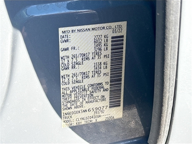 4WD, 17`` Alloy Wheels, 3.692 Axle Ratio, 4-Wheel Disc Brakes, 6 Speakers, ABS brakes, Air Conditioning, Alloy wheels, AM/FM radio: SiriusXM, Anti-whiplash front head restraints, Auto High-beam Headlights, Automatic temperature control, Brake assist, Bumpers: body-color, Delay-off headlights, Driver door bin, Driver vanity mirror, Dual front impact airbags, Dual front side impact airbags, Electronic Stability Control, Emergency communication system: NissanConnect Services, Front anti-roll bar, Front Bucket Seats, Front Center Armrest, Front dual zone A/C, Front fog lights, Front reading lights, Front wheel independent suspension, Fully automatic headlights, Illuminated entry, Knee airbag, Leather Shift Knob, Low tire pressure warning, Navigation system: Nissan Navigation with Voice Recognition, Occupant sensing airbag, Off-Road Protection Package, Off-Road Style Step Rails, Overhead airbag, Overhead console, Panic alarm, Passenger door bin, Passenger vanity mirror, Power door mirrors, Power driver seat, Power steering, Power windows, PRO Embroidered Premium Cloth Seat Trim, PRO-4X Mud Flaps, Radio data system, Radio: SXM/AM/FM/AUX/USB Audio System w/6 Speakers, Rear anti-roll bar, Rear seat center armrest, Rear step bumper, Remote keyless entry, Security system, Speed control, Speed-sensing steering, Split folding rear seat, Steering wheel mounted audio controls, Tachometer, Tilt steering wheel, Traction control, Trip computer, Variably intermittent wipers, Voltmeter, 4WD.