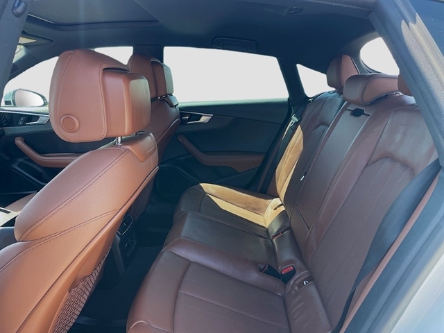 10 Speakers, 4-Wheel Disc Brakes, ABS brakes, Air Conditioning, Alloy wheels, AM/FM radio, Anti-whiplash front head restraints, Auto High-beam Headlights, Auto-dimming Rear-View mirror, Automatic temperature control, Brake assist, Bumpers: body-color, Compass, Delay-off headlights, Driver door bin, Driver vanity mirror, Dual front impact airbags, Dual front side impact airbags, Electronic Stability Control, Emergency communication system: Audi connect CARE, Exterior Parking Camera Rear, Four wheel independent suspension, Front anti-roll bar, Front Bucket Seats, Front Center Armrest, Front dual zone A/C, Front fog lights, Front reading lights, Garage door transmitter: HomeLink, Genuine wood console insert, Genuine wood dashboard insert, Genuine wood door panel insert, Heated door mirrors, Heated Front Bucket Seats, Heated front seats, Illuminated entry, Knee airbag, Leather Seating Surfaces, Leather Shift Knob, Leather steering wheel, Low tire pressure warning, Occupant sensing airbag, Outside temperature display, Overhead airbag, Overhead console, Panic alarm, Passenger door bin, Passenger vanity mirror, Power adjustable front head restraints, Power door mirrors, Power driver seat, Power Liftgate, Power moonroof, Power passenger seat, Power steering, Power windows, Radio data system, Radio: Audi Sound System, Rain sensing wipers, Rear air conditioning, Rear anti-roll bar, Rear reading lights, Rear seat center armrest, Rear window defroster, Remote keyless entry, Speed control, Speed-sensing steering, Speed-Sensitive Wipers, Split folding rear seat, Steering wheel mounted audio controls, Tachometer, Telescoping steering wheel, Tilt steering wheel, Traction control, Trip computer, Turn signal indicator mirrors, Variably intermittent wipers, Wheels: 18`` 5-V-Spoke-Y Design.