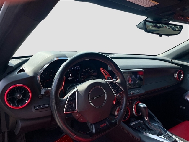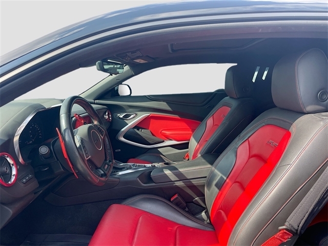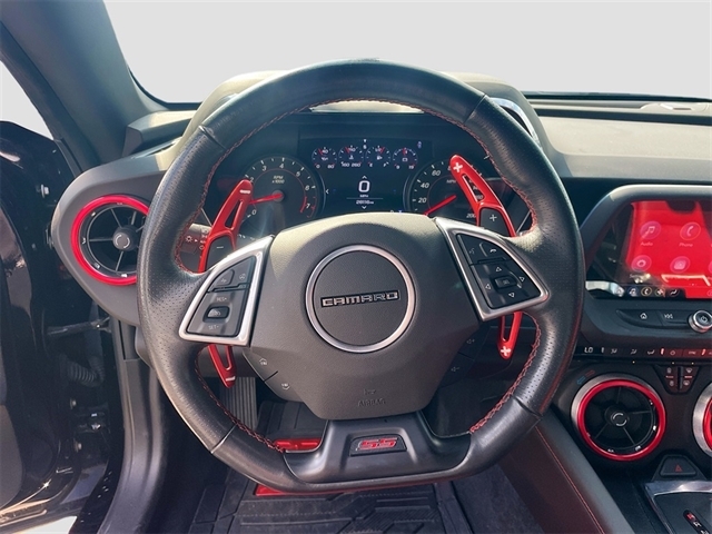 2.77 Rear Axle Ratio, 4-Wheel Disc Brakes, 6-Way Power Front Passenger Seat Adjuster, 8-Way Power Driver Seat Adjuster, 9 Speakers, ABS brakes, Adrenaline Red Interior Accent Trim Package, Air Conditioning, Alloy wheels, AM/FM radio: SiriusXM with 360L, Apple CarPlay/Android Auto, Auto-dimming door mirrors, Automatic temperature control, Bluetooth® For Phone, Bose Premium 9-Speaker Audio System Feature, Brake assist, Bumpers: body-color, Camaro Logo Fender Badge (LPO), Compass, Custom Launch Control, Delay-off headlights, Driver door bin, Driver vanity mirror, Dual front impact airbags, Dual front side impact airbags, Dual Mode Exhaust, Electronic Stability Control, Exterior Parking Camera Rear, Four wheel independent suspension, Front anti-roll bar, Front Bucket Seats, Front Center Armrest, Front dual zone A/C, Front License Plate Bracket, Front reading lights, Front Sport Bucket Seats, Fully automatic headlights, Ground Effects Package, Heads-Up Display, Heated door mirrors, Heated Driver & Front Passenger Seats, Heated front seats, Heated steering wheel, Illuminated entry, Knee airbag, Leather Shift Knob, Leather-Trimmed Seat Trim, Low tire pressure warning, Magnetic Ride Control, Memory seat, Occupant sensing airbag, Outside temperature display, Overhead airbag, Paddle-Shift Manual Controls, Panic alarm, Passenger door bin, Passenger vanity mirror, Power door mirrors, Power driver seat, Power passenger seat, Power steering, Power Sunroof, Power windows, Preferred Equipment Group 2SS, Premium audio system: Chevrolet Infotainment System, Radio data system, Radio: Chevrolet Infotainment 3 Plus System, Rear anti-roll bar, Rear window defroster, Red Hash Mark Stripes (LPO), Red Seat Belt Color, Red-Painted Calipers, Remote keyless entry, Remote Vehicle Starter System, Security system, SiriusXM w/360L, Speed control, Speed-sensing steering, Spoiler, Steering wheel mounted audio controls, Tachometer, Telescoping steering wheel, Tilt steering wheel, Traction control, Trip computer, Variably intermittent wipers, Ventilated Driver & Front Passenger Seats, Ventilated front seats, Voltmeter, Wheels: 20`` x 8.5`` Fr & 20`` x 9.5`` Rr 5-Spoke, Wheels: 20`` x 8.5`` Fr & 20`` x 9.5`` Rr 5-Spoke Alum. Recent Arrival!