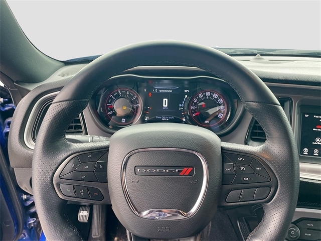 4-Wheel Disc Brakes, 6 Speakers, ABS brakes, Air Conditioning, Alloy wheels, AM/FM radio, Anti-whiplash front head restraints, Apple CarPlay, Apple CarPlay/Android Auto, Auto-dimming Rear-View mirror, Automatic temperature control, Black Fuel Filler Door, Black Grille w/Bezel, Blacktop Package, Brake assist, Bumpers: body-color, Challenger Blacktop Grille Badge, Compass, Compass Gauge, Delay-off headlights, Driver door bin, Driver vanity mirror, Dual front impact airbags, Dual front side impact airbags, Electronic Stability Control, Four wheel independent suspension, Front anti-roll bar, Front Bucket Seats, Front Center Armrest, Front dual zone A/C, Front License Plate Bracket, Front reading lights, Fully automatic headlights, Gloss Black I/P Cluster Trim Rings, Google Android Auto, GPS Antenna Input, Heated door mirrors, Houndstooth Cloth Sport Seat, Illuminated entry, Integrated Center Stack Radio, Integrated Voice Command w/Bluetooth, Leather Performance Steering Wheel, Leather Shift Knob, Low tire pressure warning, Media Hub (2 USB, AUX), Outside temperature display, Overhead airbag, Overhead console, Panic alarm, ParkView Rear Back-Up Camera, Passenger door bin, Passenger vanity mirror, Power door mirrors, Power driver seat, Power steering, Power windows, Quick Order Package 2EA, Radio data system, Radio: Uconnect 4 w/7`` Display, Rear anti-roll bar, Rear Black Spoiler, Rear reading lights, Rear seat center armrest, Rear window defroster, Remote keyless entry, Satin Black Dodge Tail Lamp Badge, Security system, Speed control, Speed-sensing steering, Split folding rear seat, Spoiler, Steering wheel mounted audio controls, Tachometer, Telescoping steering wheel, Tilt steering wheel, Traction control, Trip computer, USB Host Flip, Variably intermittent wipers, Wheels: 18`` x 7.5`` Cast Aluminum, Wheels: 20`` x 8.0`` Black Noise Painted. Recent Arrival!