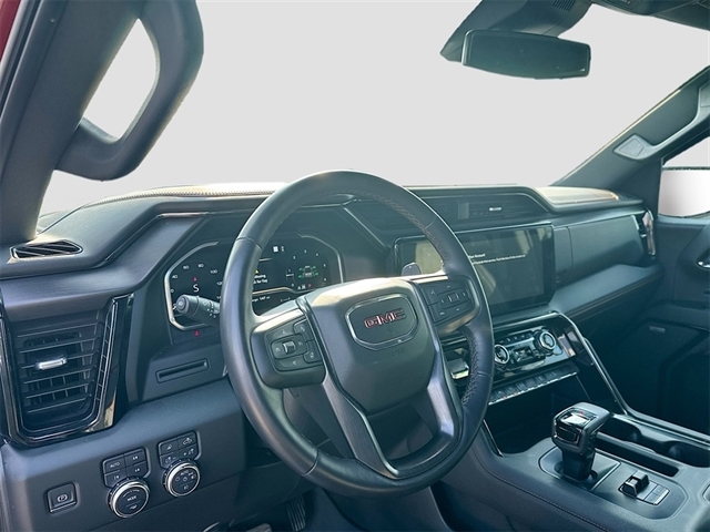 10-Speed Automatic, 4WD, Jet Black With Kalahari Accents Leather, 10-Way Power Driver Seat Adjuster w/Lumbar, 10-Way Power Passenger Seat Adjuster w/Lumbar, 120-Volt Bed Mounted Power Outlet, 120-Volt Instrument Panel Power Outlet, 18`` x 8.5`` Machined Aluminum Wheels, 2 Charge/Data USB Ports Inside Center Console, 2 Type-C Charge-Only Rear USB Ports, 2 USB Ports, 220 Amp Alternator, 3.23 Rear Axle Ratio, 4-Wheel Disc Brakes, 7 Speakers, ABS brakes, Air Conditioning, Alloy wheels, AM/FM radio: SiriusXM with 360L, Apple CarPlay/Android Auto, Auto High-beam Headlights, Auto-dimming door mirrors, Auto-dimming Rear-View mirror, Auto-Locking Rear Differential, Automatic Emergency Braking, Automatic temperature control, Black Chrome Header & Grille Insert Bars, Block heater, Brake assist, Buckle to Drive, Bumpers: body-color, Color-Keyed Carpeting Floor Covering, Compass, Deep-Tinted Glass, Delay-off headlights, Driver door bin, Driver Memory, Driver vanity mirror, Dual front impact airbags, Dual front side impact airbags, Electric Rear-Window Defogger, Electrical Steering Column Lock, Electronic Stability Control, Emergency communication system: OnStar and GMC Connected Services capable, Engine Block Heater, Floor-Mounted Center Console, Following Distance Indicator, Forward Collision Alert, Front anti-roll bar, Front Bucket Seats, Front Center Armrest, Front dual zone A/C, Front fog lights, Front License Plate Kit, Front Pedestrian Braking, Front Prem Floor Liners w/Removable Carpet Insert, Front Rainsensing Wipers, Front reading lights, Front wheel independent suspension, Fully automatic headlights, GMC Connected Access Capable, HD Rear Vision Camera, Heated 2nd Row Outboard Seats, Heated door mirrors, Heated Driver & Front Outboard Passenger Seating, Heated front seats, Heated rear seats, Heated Steering Wheel, Heated steering wheel, Heavy-Duty Air Filter, Hill Descent Control, Hitch Guidance, Hitch Guidance w/Hitch View, Illuminated entry, In-Vehicle Trailering App, Integrated Trailer Brake Controller, IntelliBeam Automatic High Beam On/Off, Keyless Open & Start, Lane Keep Assist w/Lane Departure Warning, LED Cargo Area Lighting, Low tire pressure warning, Memory seat, Navigation System, Not Equip w/Heat & Vent Seat Cushion Blower Motor, Not Equipped w/Steering Column Lock, Occupant sensing airbag, Off-Road Suspension, OnStar & GMC Connected Services Capable, Outside temperature display, Overhead airbag, Overhead console, Panic alarm, Passenger door bin, Passenger vanity mirror, Perforated Front Leather Seat Trim, Perimeter Lighting, Power Door Locks, Power door mirrors, Power driver seat, Power Front Passenger Windows w/Express Up/Down, Power Front Windows w/Driver Express Up/Down, Power passenger seat, Power Rake & Telescoping Steering Column, Power Rear Windows w/Express Down, Power steering, Power windows, Preferred Equipment Group 4SB, Premium audio system: GMC Infotainment System, Premium Bose 7-Speaker Sound System, Push Button Start, Radio data system, Radio: Premium GMC Infotainment Audio System, Rain sensing wipers, Rear Prem Floor Liners w/Removable Carpet Insert, Rear reading lights, Rear seat center armrest, Rear step bumper, Rear Wheelhouse Liners, Rear window defroster, Red Recovery Hooks, Remote keyless entry, Remote Vehicle Starter System, Safety Alert Seat, Security system, SiriusXM w/360L, Speed control, Speed-sensing steering, Split folding rear seat, Spray-On Pickup Bed Liner w/AT4 Logo, Steering Wheel Audio Controls, Steering wheel mounted audio controls, Tachometer, Telescoping steering wheel, Theft Deterrent System (Unauthorized Entry), Tilt steering wheel, Traction control, Trailering Package, Trip computer, Variably