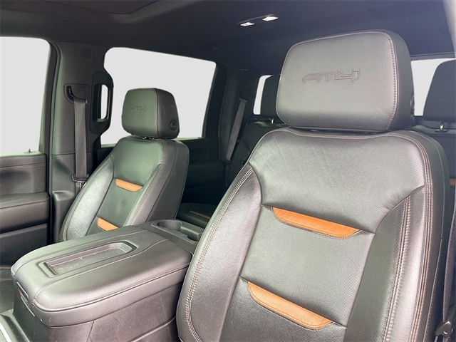 10-Speed Automatic, 4WD, Jet Black With Kalahari Accents Leather, 10-Way Power Driver Seat Adjuster w/Lumbar, 10-Way Power Passenger Seat Adjuster w/Lumbar, 12-Volt Rear Auxiliary Power Outlet, 120-Volt Bed Mounted Power Outlet, 120-Volt Instrument Panel Power Outlet, 18`` Machined Aluminum Wheels, 2 USB Ports, 2 USB Ports (1st Row), 2-Speed Active Transfer Case, 20`` Machined Aluminum Wheels, 220 Amps Alternator, 2nd Row Dual USB Charge-Only Ports, 3.42 Axle Ratio, 3.73 Rear Axle Ratio, 4-Wheel Disc Brakes, 4.2`` Diagonal Color Display Driver Info Center, 4G LTE Wi-Fi Hotspot Capable, 6 Speakers, 6-Speaker Audio System Feature, 8`` Multicolor Driver Information Center, ABS brakes, Air Conditioning, Alloy wheels, AM/FM radio: SiriusXM with 360L, Apple CarPlay/Android Auto, AT4 High Clearance Step (LPO), AT4 Preferred Package, AT4 Premium Plus Package, Auto-dimming door mirrors, Auto-dimming Rear-View mirror, Automatic Emergency Braking, Automatic temperature control, Bed View Camera w/2 Trailer Camera Provisions, Bose Premium 7 Speaker Sound System, Brake assist, Bumpers: body-color, Compass, Compass Located In Instrument Cluster, Deep-Tinted Glass, Delay-off headlights, Driver Alert Package I, Driver Alert Package II, Driver door bin, Driver Memory, Driver vanity mirror, Dual front impact airbags, Dual front side impact airbags, Electric Rear-Window Defogger, Electrical Lock Control Steering Column, Electronic Stability Control, Engine Block Heater, Exhaust Brake, Floor-Mounted Center Console, Following Distance Indicator, Forward Collision Alert, Front anti-roll bar, Front Bucket Seats, Front Center Armrest, Front dual zone A/C, Front fog lights, Front Prem Floor Liners w/Removable Carpet Insert, Front reading lights, Front wheel independent suspension, Fully automatic headlights, GMC Connected Access Capable, Gooseneck/5th Wheel Package, Gooseneck/5th Wheel Prep Package, HD Radio, HD Rear Vision Camera, HD Surround Vision, Heated & Ventilated Front Bucket Seats, Heated 2nd Row Outboard Seats, Heated door mirrors, Heated Driver & Front Outboard Passenger Seats, Heated front seats, Heated rear seats, Heated steering wheel, Heavy-Duty 80 Amp Battery, Hill Descent Control, Hitch Guidance w/Hitch View, Illuminated entry, In-Vehicle Trailering System App, Inside Rearview Auto-Dimming Rear Camera Mirror, Integrated Trailer Brake Controller, IntelliBeam Automatic High Beam On/Off, Keyless Open & Start, Lane Change Alert w/Side Blind Zone Alert, Lane Departure Warning System, LED Cargo Area Lighting, LED Smoked Amber Roof Marker Lamps, Low tire pressure warning, Manual Tilt-Wheel/Telescoping Steering Column, Memory seat, Multicolor 15`` Diagonal Head-Up Display, Occupant sensing airbag, Off-Road Suspension, OnStar & GMC Connected Services Capable, Outside temperature display, Overhead airbag, Overhead console, Painted Black Surround Grille, Panic alarm, Passenger door bin, Passenger vanity mirror, Perforated Leather-Appointed Front Seat Trim, Perimeter Lighting, Pickup Box, Power Door Locks, Power door mirrors, Power driver seat, Power Front Passenger Windows w/Express Up/Down, Power passenger seat, Power Rear Windows w/Express Down, Power Sliding Rear Window w/Defogger, Power steering, Power Sunroof, Power windows, Power Windows w/Driver Express Up/Down, Preferred Equipment Group 4SB, Premium audio system: Premium GMC Infotainment System, Radio: AM/FM w/Premium GMC Infotainment System, Radio: Premium GMC Infotainment Sys w/Navigation, Rear Cross Traffic Alert, Rear Prem Floor Liners w/Removable Carpet Insert, Rear reading lights, Rear seat center armrest, Rear step bumper, Rear Wheelhouse Liners, Rear window defroster, Red Recovery Hooks, Remote keyless entry, Rem