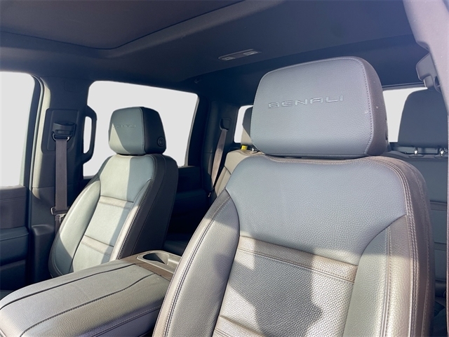 10-Speed Automatic, 4WD, Dark Walnut/Dark Ash Grey Leather, 10-Way Power Driver Seat Adjuster w/Lumbar, 10-Way Power Passenger Seat Adjuster w/Lumbar, 12-Volt Rear Auxiliary Power Outlet, 120-Volt Bed Mounted Power Outlet, 120-Volt Instrument Panel Power Outlet, 2 USB Ports, 2 USB Ports (1st Row), 2-Speed Active Transfer Case, 220 Amps Alternator, 2nd Row Dual USB Charge-Only Ports, 4-Wheel Disc Brakes, 6`` Rectangular Chromed Tubular Assist Steps, 7 Speakers, ABS brakes, Air Conditioning, Alloy wheels, AM/FM radio: SiriusXM with 360L, Apple CarPlay/Android Auto, Auto High-beam Headlights, Auto-dimming door mirrors, Auto-dimming Rear-View mirror, Automatic Emergency Braking, Automatic temperature control, Bed View Camera w/2 Trailer Camera Provisions, Bose Premium 7 Speaker Sound System, Brake assist, Bumpers: body-color, Compass, Compass Located In Instrument Cluster, Deep-Tinted Glass, Delay-off headlights, Denali Ultimate Package, Driver Alert Package I, Driver Alert Package II, Driver door bin, Driver Memory, Driver vanity mirror, Dual front impact airbags, Dual front side impact airbags, Electric Rear-Window Defogger, Electrical Lock Control Steering Column, Electronic Stability Control, Emergency communication system: OnStar and GMC connected services capable, Engine Block Heater, Exhaust Brake, Exterior Parking Camera Rear, Floor-Mounted Center Console, Following Distance Indicator, Forge Perforated Leather-Appointed Front Seat Trim, Forward Collision Alert, Front anti-roll bar, Front Bucket Seats, Front Center Armrest, Front Chrome Recovery Hooks, Front dual zone A/C, Front fog lights, Front License Plate Kit, Front reading lights, Front wheel independent suspension, Fully automatic headlights, Garage door transmitter, Genuine wood console insert, Genuine wood door panel insert, GMC Connected Access Capable, GMC MultiPro Tailgate Step Lights (LPO), Gooseneck/5th Wheel Prep Package, HD Surround Vision w/2 Trailer View Camera Provisions, Heated & Ventilated Front Bucket Seats, Heated 2nd Row Outboard Seats, Heated door mirrors, Heated Driver & Front Outboard Passenger Seats, Heated front seats, Heated rear seats, Heated steering wheel, Heavy-Duty 80 Amp Battery, High Idle Switch, Hill Descent Control, Hitch Guidance w/Hitch View, Hitch Package (LPO), Illuminated entry, In-Vehicle Trailering System App, Inside Rearview Auto-Dimming Rear Camera Mirror, Integrated Trailer Brake Controller, IntelliBeam Automatic High Beam On/Off, Keyless Open & Start, Lane Change Alert w/Side Blind Zone Alert, Lane Departure Warning System, LED Cargo Area Lighting, LED Smoked Amber Roof Marker Lamps, Low tire pressure warning, Manual Tilt-Wheel/Telescoping Steering Column, Memory seat, Multicolor 15`` Diagonal Head-Up Display, MultiPro Audio System by Kicker (LPO), Navigation System, Not Equipped w/Hood Insulator, Occupant sensing airbag, Off-Road Suspension, OnStar & GMC Connected Services Capable, Outside temperature display, Overhead airbag, Overhead console, Panic alarm, Passenger door bin, Passenger vanity mirror, Pickup Box, Polished Exhaust Tip, Power Door Locks, Power door mirrors, Power driver seat, Power Front Passenger Windows w/Express Up/Down, Power passenger seat, Power Rear Windows w/Express Down, Power Sliding Rear Window w/Defogger, Power steering, Power Sunroof, Power windows, Power Windows w/Driver Express Up/Down, Power-Retractable Assist Steps, Preferred Equipment Group 5SA, Premium audio system: Premium GMC Infotainment System, Radio: AM/FM w/Prem GMC Infotainment System & Navi, Rear Cross Traffic Alert, Rear reading lights, Rear seat center armrest, Rear step bumper, Rear Wheelhouse Liners, Rear window defrost