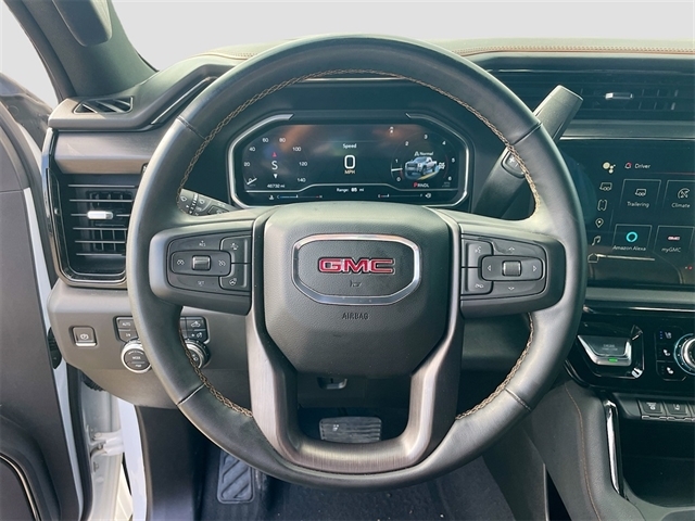10-Speed Automatic, 4WD, Jet Black With Kalahari Accents Leather, 10-Way Power Driver Seat Adjuster w/Lumbar, 10-Way Power Passenger Seat Adjuster w/Lumbar, 120-Volt Bed Mounted Power Outlet, 120-Volt Instrument Panel Power Outlet, 2 Charge-Only Rear USB Ports, 2 Charge/Data USB Ports Inside Center Console, 2 USB Ports, 2-Speed Active Transfer Case, 220-Amp Alternator, 4-Wheel Disc Brakes, 7 Speakers, ABS brakes, Adaptive Cruise Control, Air Conditioning, Alloy wheels, AM/FM radio: SiriusXM with 360L, Apple CarPlay/Android Auto, AT4 Preferred Package, AT4 Premium Plus Package, Auto High-beam Headlights, Auto-dimming door mirrors, Auto-dimming Rear-View mirror, Automatic Emergency Braking, Automatic temperature control, Bed View Camera w/2 Trailer Camera Provisions, Body Color Wheel Arch Moldings (LPO), Bose Premium 7-Speaker Sound System, Brake assist, Buckle to Drive, Bumpers: body-color, Compass, Deep-Tinted Glass, Delay-off headlights, Driver door bin, Driver Memory, Driver vanity mirror, Dual front impact airbags, Dual front side impact airbags, Electric Rear-Window Defogger, Electronic Stability Control, Engine Block Heater, Exhaust Brake, Floor-Mounted Center Console, Following Distance Indicator, Forward Collision Alert, Front anti-roll bar, Front Bucket Seats, Front Center Armrest, Front dual zone A/C, Front fog lights, Front License Plate Kit, Front Pedestrian Braking, Front Prem Floor Liners w/Removable Carpet Insert, Front Rain-Sensing Wipers, Front reading lights, Front wheel independent suspension, Fully automatic headlights, Gloss Black Header Grille & Grille Insert Bars, GMC Connected Access Capable, Gooseneck/5th Wheel Prep Package, HD Surround Vision, Heated 2nd Row Outboard Seats, Heated door mirrors, Heated Driver & Front Outboard Passenger Seats, Heated front seats, Heated rear seats, Heated steering wheel, Heavy-Duty 80 Amp Battery, Hill Descent Control, Hitch Guidance w/Hitch View, Illuminated entry, In-Vehicle Trailering System App, Inside Rearview Auto-Dimming Rear Camera Mirror, Integrated Trailer Brake Controller, IntelliBeam Automatic High Beam On/Off, Keyless Open & Start, Lane Departure Warning System, LED Cargo Area Lighting, LED Smoked Amber Roof Marker Lamps, Low tire pressure warning, Manual Tilt-Wheel/Telescoping Steering Column, Memory seat, Multicolor 15`` Diagonal Head-Up Display, Occupant sensing airbag, Off-Road High Clearance Step (LPO), Off-Road Suspension, OnStar & GMC Connected Services Capable, Outside temperature display, Overhead airbag, Overhead console, Panic alarm, Passenger door bin, Passenger vanity mirror, Perforated Leather-Appointed Front Seat Trim, Pickup Box, Power door mirrors, Power driver seat, Power Front Passenger Windows w/Express Up/Down, Power passenger seat, Power Sliding Rear Window w/Defogger, Power steering, Power Sunroof, Power windows, Preferred Equipment Group 4SB, Premium audio system: Premium GMC Infotainment System, Push Button Start, Radio: AM/FM w/Premium GMC Infotainment System, Rain sensing wipers, Rear Cross Traffic Alert, Rear Prem Floor Liners w/Removable Carpet Insert, Rear reading lights, Rear seat center armrest, Rear step bumper, Rear Wheelhouse Liners, Rear window defroster, Remote keyless entry, Remote Vehicle Starter System, Safety Alert Seat, Security system, SiriusXM w/360L, Speed control, Speed-sensing steering, Split folding rear seat, Spray-On Bedliner w/AT4 Logo, Steering Wheel Audio Controls, Steering wheel mounted audio controls, Tachometer, Technology Package, Telescoping steering wheel, Tilt steering wheel, Traction control, Trailer Cam Provisions & Trailer Viewing Software, Trailer Side Blind Zone Alert, Trip computer, Turn signal