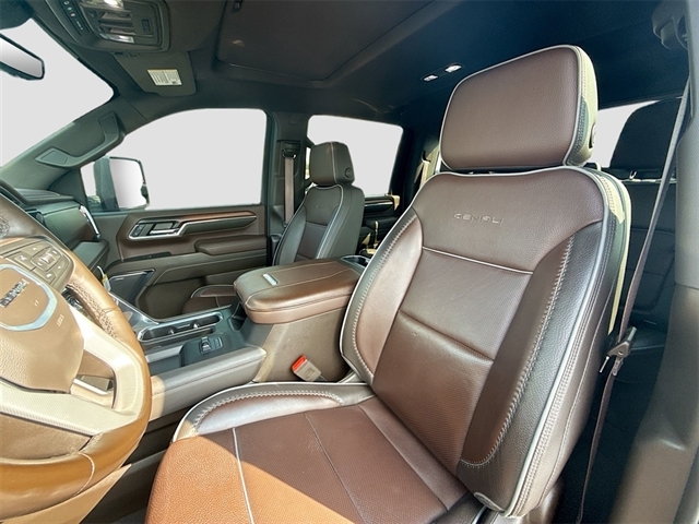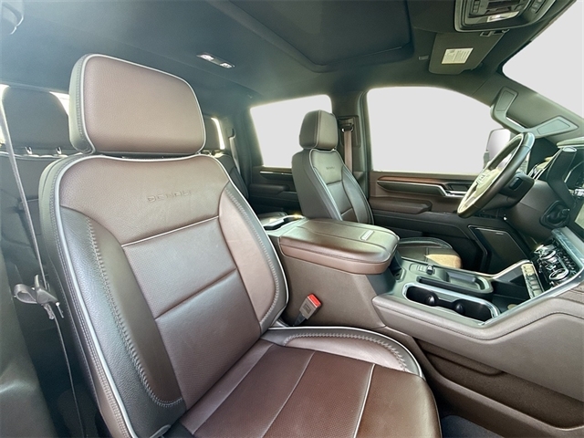 10-Speed Automatic, 4WD, Atmosphere/Brownstone Leather, 12-Way Power Driver Seat Adjuster w/Lumbar, 12-Way Power Passenger Seat Adjuster w/Lumbar, 120-Volt Bed Mounted Power Outlet, 120-Volt Instrument Panel Power Outlet, 2 Charge-Only Rear USB Ports, 2 Charge/Data USB Ports Inside Center Console, 2 USB Ports, 2-Speed Active Transfer Case, 220-Amp Alternator, 4-Wheel Disc Brakes, 7 Speakers, ABS brakes, Adaptive Cruise Control, Air Conditioning, Alloy wheels, AM/FM radio: SiriusXM with 360L, Apple CarPlay/Android Auto, Auto High-beam Headlights, Auto-dimming door mirrors, Auto-dimming Rear-View mirror, Automatic Emergency Braking, Automatic temperature control, Bed View Camera w/2 Trailer Camera Provisions, Body Color Wheel Arch Moldings (LPO), Bose Premium 7-Speaker Sound System, Brake assist, Buckle to Drive, Bumpers: body-color, Compass, Deep-Tinted Glass, Delay-off headlights, Denali Reserve Package, Driver door bin, Driver Memory, Driver vanity mirror, Dual front impact airbags, Dual front side impact airbags, Electric Rear-Window Defogger, Electronic Stability Control, Emergency communication system: OnStar and GMC connected services capable, Engine Block Heater, Exhaust Brake, Floor-Mounted Center Console, Following Distance Indicator, Forge Perforated Leather-Appointed Front Seat Trim, Forward Collision Alert, Front anti-roll bar, Front Bucket Seats, Front Center Armrest, Front dual zone A/C, Front fog lights, Front License Plate Kit, Front Pedestrian Braking, Front Rain-Sensing Wipers, Front reading lights, Front wheel independent suspension, Fully automatic headlights, Garage door transmitter, Genuine wood dashboard insert, Genuine wood door panel insert, GMC Connected Access Capable, Gooseneck/5th Wheel Prep Package, HD Surround Vision, Heated 2nd Row Outboard Seats, Heated door mirrors, Heated Driver & Front Outboard Passenger Seats, Heated front seats, Heated rear seats, Heated steering wheel, Heavy-Duty 80 Amp Battery, Hill Descent Control, Hitch Guidance w/Hitch View, Illuminated entry, In-Vehicle Trailering System App, Inside Rearview Auto-Dimming Rear Camera Mirror, Integrated Trailer Brake Controller, IntelliBeam Automatic High Beam On/Off, Keyless Open & Start, Lane Departure Warning System, LED Cargo Area Lighting, LED Smoked Amber Roof Marker Lamps, Low tire pressure warning, Manual Tilt-Wheel/Telescoping Steering Column, Max Trailering Package, Memory seat, Multicolor 15`` Diagonal Head-Up Display, Occupant sensing airbag, Off-Road Suspension, OnStar & GMC Connected Services Capable, Outside temperature display, Overhead airbag, Overhead console, Panic alarm, Passenger door bin, Passenger vanity mirror, Pickup Box, Polished Exhaust Tip, Power door mirrors, Power driver seat, Power Front Passenger Windows w/Express Up/Down, Power passenger seat, Power Sliding Rear Window w/Defogger, Power steering, Power Sunroof, Power windows, Power-Retractable Assist Steps, Preferred Equipment Group 5SA, Premium audio system: Premium GMC Infotainment System, Push Button Start, Radio: AM/FM w/Premium GMC Infotainment System, Rain sensing wipers, Rear Cross Traffic Alert, Rear reading lights, Rear seat center armrest, Rear step bumper, Rear Wheelhouse Liners, Rear window defroster, Remote keyless entry, Remote Vehicle Starter System, Safety Alert Seat, Security system, Signature Chrome Denali Grille, SiriusXM w/360L, Speed control, Speed-sensing steering, Split folding rear seat, Spray-On Bedliner w/Denali Logo, Steering Wheel Audio Controls, Steering wheel mounted audio controls, Tachometer, Technology Package, Telescoping steering wheel, Tilt steering wheel, Traction control, Trailer Cam Provisions & Trailer Viewi