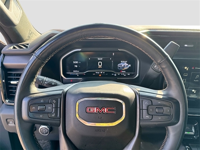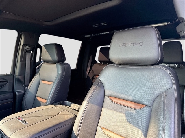 10-Speed Automatic, 4WD, Jet Black With Kalahari Accents Leather, 10-Way Power Driver Seat Adjuster w/Lumbar, 10-Way Power Passenger Seat Adjuster w/Lumbar, 120-Volt Bed Mounted Power Outlet, 120-Volt Instrument Panel Power Outlet, 2 Charge-Only Rear USB Ports, 2 Charge/Data USB Ports Inside Center Console, 2 USB Ports, 2-Speed Active Transfer Case, 220-Amp Alternator, 4-Wheel Disc Brakes, 7 Speakers, ABS brakes, Adaptive Cruise Control, Air Conditioning, Alloy wheels, AM/FM radio: SiriusXM with 360L, Apple CarPlay/Android Auto, AT4 Preferred Package, AT4 Premium Plus Package, Auto High-beam Headlights, Auto-dimming door mirrors, Auto-dimming Rear-View mirror, Automatic Emergency Braking, Automatic temperature control, Bed View Camera w/2 Trailer Camera Provisions, Bose Premium 7-Speaker Sound System, Brake assist, Buckle to Drive, Bumpers: body-color, Compass, Deep-Tinted Glass, Delay-off headlights, Driver door bin, Driver Memory, Driver vanity mirror, Dual front impact airbags, Dual front side impact airbags, Electric Rear-Window Defogger, Electronic Stability Control, Engine Block Heater, Exhaust Brake, Floor-Mounted Center Console, Following Distance Indicator, Forward Collision Alert, Front anti-roll bar, Front Bucket Seats, Front Center Armrest, Front dual zone A/C, Front fog lights, Front License Plate Kit, Front Pedestrian Braking, Front Prem Floor Liners w/Removable Carpet Insert, Front Rain-Sensing Wipers, Front reading lights, Front wheel independent suspension, Fully automatic headlights, Gloss Black Header Grille & Grille Insert Bars, GMC Connected Access Capable, GMC MultiPro Tailgate Step Lights (LPO), Gooseneck/5th Wheel Prep Package, HD Surround Vision, Heated 2nd Row Outboard Seats, Heated door mirrors, Heated Driver & Front Outboard Passenger Seats, Heated front seats, Heated rear seats, Heated steering wheel, Heavy-Duty 80 Amp Battery, Hill Descent Control, Hitch Guidance w/Hitch View, Illuminated entry, In-Vehicle Trailering System App, Inside Rearview Auto-Dimming Rear Camera Mirror, Integrated Trailer Brake Controller, IntelliBeam Automatic High Beam On/Off, Keyless Open & Start, Lane Departure Warning System, LED Cargo Area Lighting, LED Smoked Amber Roof Marker Lamps, Low tire pressure warning, Manual Tilt-Wheel/Telescoping Steering Column, Memory seat, Multicolor 15`` Diagonal Head-Up Display, Occupant sensing airbag, Off-Road High Clearance Step (LPO), Off-Road Suspension, OnStar & GMC Connected Services Capable, Outside temperature display, Overhead airbag, Overhead console, Panic alarm, Passenger door bin, Passenger vanity mirror, Perforated Leather-Appointed Front Seat Trim, Pickup Box, Power door mirrors, Power driver seat, Power Front Passenger Windows w/Express Up/Down, Power passenger seat, Power Sliding Rear Window w/Defogger, Power steering, Power Sunroof, Power windows, Preferred Equipment Group 4SB, Premium audio system: Premium GMC Infotainment System, Push Button Start, Radio: AM/FM w/Premium GMC Infotainment System, Rain sensing wipers, Rear Cross Traffic Alert, Rear Prem Floor Liners w/Removable Carpet Insert, Rear reading lights, Rear seat center armrest, Rear step bumper, Rear Wheelhouse Liners, Rear window defroster, Remote keyless entry, Remote Vehicle Starter System, Safety Alert Seat, Security system, SiriusXM w/360L, Speed control, Speed-sensing steering, Split folding rear seat, Spray-On Bedliner w/AT4 Logo, Steering Wheel Audio Controls, Steering wheel mounted audio controls, Tachometer, Technology Package, Telescoping steering wheel, Tilt steering wheel, Traction control, Trailer Cam Provisions & Trailer Viewing Software, Trailer Side Blind Zone Alert, Trip computer