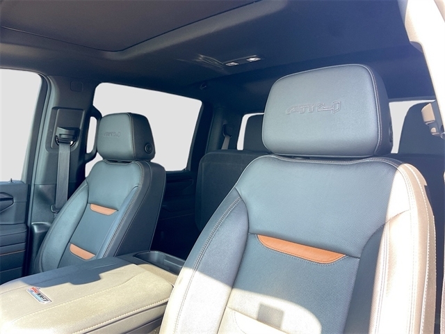 10-Speed Automatic, 4WD, Jet Black With Kalahari Accents Leather, 10-Way Power Driver Seat Adjuster w/Lumbar, 10-Way Power Passenger Seat Adjuster w/Lumbar, 120-Volt Bed Mounted Power Outlet, 120-Volt Instrument Panel Power Outlet, 2 Charge-Only Rear USB Ports, 2 Charge/Data USB Ports Inside Center Console, 2 USB Ports, 2-Speed Active Transfer Case, 220-Amp Alternator, 4-Wheel Disc Brakes, 7 Speakers, ABS brakes, Air Conditioning, Alloy wheels, AM/FM radio: SiriusXM with 360L, Apple CarPlay/Android Auto, AT4 Preferred Package, AT4 Premium Plus Package, Auto High-beam Headlights, Auto-dimming door mirrors, Auto-dimming Rear-View mirror, Automatic Emergency Braking, Automatic temperature control, Bed View Camera w/2 Trailer Camera Provisions, Bose Premium 7-Speaker Sound System, Brake assist, Buckle to Drive, Bumpers: body-color, Compass, Deep-Tinted Glass, Delay-off headlights, Driver door bin, Driver Memory, Driver vanity mirror, Dual front impact airbags, Dual front side impact airbags, Electric Rear-Window Defogger, Electronic Stability Control, Emergency communication system: OnStar, Engine Block Heater, Exhaust Brake, Floor-Mounted Center Console, Following Distance Indicator, Forward Collision Alert, Front anti-roll bar, Front Bucket Seats, Front Center Armrest, Front dual zone A/C, Front fog lights, Front License Plate Kit, Front Pedestrian Braking, Front Prem Floor Liners w/Removable Carpet Insert, Front Rain-Sensing Wipers, Front reading lights, Front wheel independent suspension, Fully automatic headlights, Gloss Black Header Grille & Grille Insert Bars, GMC MultiPro Tailgate Step Lights (LPO), Gooseneck/5th Wheel Prep Package, HD Surround Vision, Heated 2nd Row Outboard Seats, Heated door mirrors, Heated Driver & Front Outboard Passenger Seats, Heated front seats, Heated rear seats, Heated steering wheel, Heavy-Duty 80 Amp Battery, Hill Descent Control, Hitch Guidance w/Hitch View, Illuminated entry, In-Vehicle Trailering System App, Inside Rearview Auto-Dimming Rear Camera Mirror, IntelliBeam Automatic High Beam On/Off, Keyless Open & Start, Lane Departure Warning System, LED Cargo Area Lighting, LED Smoked Amber Roof Marker Lamps, Low tire pressure warning, Manual Tilt-Wheel/Telescoping Steering Column, Memory seat, Multicolor 15`` Diagonal Head-Up Display, Occupant sensing airbag, Off-Road High Clearance Step (LPO), Off-Road Suspension, OnStar Services Capable, Outside temperature display, Overhead airbag, Overhead console, Panic alarm, Passenger door bin, Passenger vanity mirror, Perforated Leather-Appointed Front Seat Trim, Pickup Box, Power door mirrors, Power driver seat, Power Front Passenger Windows w/Express Up/Down, Power passenger seat, Power Sliding Rear Window w/Defogger, Power steering, Power Sunroof, Power windows, Power-Retractable Black Assist Steps, Preferred Equipment Group 4SB, Push Button Start, Radio: AM/FM w/Premium GMC Infotainment System, Rain sensing wipers, Rear Cross Traffic Alert, Rear Prem Floor Liners w/Removable Carpet Insert, Rear reading lights, Rear seat center armrest, Rear step bumper, Rear Wheelhouse Liners, Rear window defroster, Remote keyless entry, Remote Vehicle Starter System, Safety Alert Seat, Security system, SiriusXM w/360L Trial Subscription, Speed control, Speed-sensing steering, Split folding rear seat, Spray-On Pickup Bedliner w/GMC Logo, Steering Wheel Audio Controls, Steering wheel mounted audio controls, Tachometer, Technology Package, Telescoping steering wheel, Tilt steering wheel, Traction control, Trailer Cam Provisions & Trailer Viewing Software, Trailer Side Blind Zone Alert, Trip computer, Turn signal indicator mirrors, Ultrasonic Front & Rear Pa