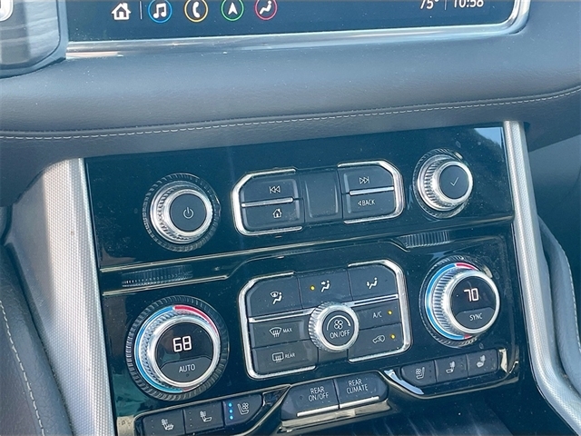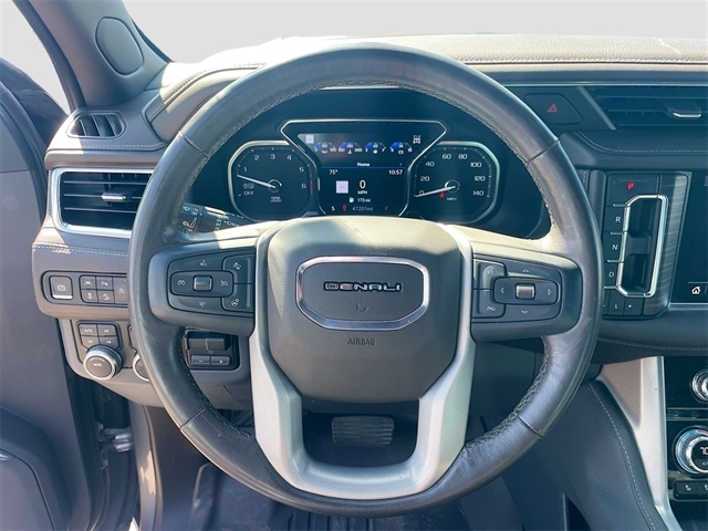 4WD, 12-Way Power Seat Adjusters, 14 Speakers, 15`` Diagonal Multi-Color Head-Up Display, 2 Presets For Outside Rearview Mirrors, 3.23 Rear Axle Ratio, 3rd Row 60/40 Power-Folding Split-Bench Seat, 3rd row seats: split-bench, 4-Wheel Disc Brakes, ABS brakes, Adaptive Cruise Control, Adaptive suspension, Advanced Security Package, Advanced Technology Package, Air Conditioning, All-Weather Cargo Mat (LPO), Alloy wheels, AM/FM radio: SiriusXM with 360L, Apple CarPlay/Android Auto, Auto High-beam Headlights, Auto-dimming door mirrors, Auto-dimming Rear-View mirror, Auto-leveling suspension, Automatic Emergency Braking, Automatic temperature control, Bodyside moldings, Bose 14-Speaker Surround w/CenterPoint, Brake assist, Bright Front & Rear Door Sill Plates, Bumpers: body-color, Chrome Door Handles w/Body-Color Strip, Compass, Delay-off headlights, Denali Premium Package, Driver door bin, Driver vanity mirror, Dual Exhaust System, Dual front impact airbags, Dual front side impact airbags, Dual-Pane Panoramic Power Sunroof, Electronic Stability Control, Emergency communication system: OnStar and GMC connected services capable, Enhanced Automatic Emergency Braking, Extra Capacity Cooling System, Following Distance Indicator, Forward Collision Alert, Four wheel independent suspension, Front & Rear Park Assist, Front anti-roll bar, Front Bucket Seats, Front Center Armrest, Front dual zone A/C, Front fog lights, Front Pedestrian Braking, Front reading lights, Fully automatic headlights, Galvano Bodyside Moldings, Garage door transmitter, Glass Breakage Sensor, Hands-Free Power Programmable Rear Liftgate, HD Radio, HD Surround Vision, Heads-Up Display, Heated & Ventilated Driver & Front Passenger Seats, Heated 2nd Row Outboard Position Seats, Heated Automatic Steering Wheel, Heated door mirrors, Heated Driver & Front Passenger Seats, Heated front seats, Heated rear seats, Heated steering wheel, Hill Descent Control, Hitch Guidance w/Hitch View, Illuminated entry, In-Vehicle Trailering App, Inside Rear-View Auto-Dimming Mirror, Inside Rearview Auto-Dimming Rear Camera Mirror, Integrated Trailer Brake Controller, IntelliBeam Automatic High Beam On/Off, Lane Change Alert w/Side Blind Zone Alert, Lane Keep Assist w/Lane Departure Warning, Leather steering wheel, License Plate Front Mounting Package, Low tire pressure warning, Magnetic Ride Control Suspension, Max Trailering Package, Memory seat, Navigation System, Occupant sensing airbag, Outside Heated Power-Adjustable Mirrors, Outside temperature display, Overhead airbag, Overhead console, Panic alarm, Passenger door bin, Passenger vanity mirror, Perforated Leather Seating Surfaces, Power door mirrors, Power driver seat, Power Liftgate, Power passenger seat, Power Release 2nd Row 60/40 Split-Folding Bench Seat, Power Release 2nd Row Bucket Seats, Power steering, Power Tilt & Telescopic Steering Column, Power windows, Power-Retractable Assist Steps, Preferred Equipment Group 5SA, Radio: AM/FM/SiriusXM w/Navigation, Rain sensing wipers, Rear air conditioning, Rear anti-roll bar, Rear Camera Mirror Washer, Rear Cross Traffic Alert, Rear Pedestrian Alert, Rear reading lights, Rear window defroster, Rear window wiper, Remote keyless entry, Roof rack: rails only, Safety Alert Seat, Security system, SiriusXM w/360L, Speed control, Speed-sensing steering, Split folding rear seat, Spoiler, Steering wheel memory, Steering wheel mounted audio controls, Tachometer, Telescoping steering wheel, Theft-Deterrent Alarm System, Tilt steering wheel, Traction control, Trailer Side Blind Zone Alert, Trailer Tire Pressure Monitor Sensors, Trip computer, Turn signal indicator mirrors, Universal Home Remote, Variably