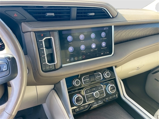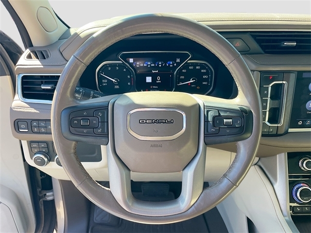 4WD, 1.5 kW Heater/Defrost Air System, 12-Way Power Seat Adjusters, 14 Speakers, 15`` Diagonal Multi-Color Head-Up Display, 2 Presets For Outside Rearview Mirrors, 250 Amps Alternator, 3.23 Rear Axle Ratio, 3rd Row 60/40 Power-Folding Split-Bench Seat, 3rd row seats: split-bench, 4-Wheel Disc Brakes, 900 Cold-Cranking Amps Battery, ABS brakes, Adaptive Cruise Control, Adaptive suspension, Advanced Security Package, Advanced Technology Package, Air Conditioning, All-Weather Floor Mats, Alloy wheels, AM/FM radio: SiriusXM with 360L, Apple CarPlay/Android Auto, Auto High-beam Headlights, Auto-dimming door mirrors, Auto-dimming Rear-View mirror, Auto-leveling suspension, Automatic Emergency Braking, Automatic temperature control, Bodyside moldings, Bose 14-Speaker Surround w/CenterPoint, Brake assist, Bright Front & Rear Door Sill Plates, Bumpers: body-color, Chrome Door Handles w/Body-Color Strip, Compass, Delay-off headlights, Denali Premium Package, Diesel B20 Fuel, Driver door bin, Driver vanity mirror, Dual Exhaust System, Dual front impact airbags, Dual front side impact airbags, Dual-Pane Panoramic Power Sunroof, Electronic Stability Control, Emergency communication system: OnStar and GMC connected services capable, Enhanced Automatic Emergency Braking, Floor Console, Following Distance Indicator, Forward Collision Alert, Four wheel independent suspension, Front & Rear Park Assist, Front anti-roll bar, Front Bucket Seats, Front Center Armrest, Front dual zone A/C, Front fog lights, Front Pedestrian Braking, Front reading lights, Fully automatic headlights, Galvano Bodyside Moldings, Garage door transmitter, Glass Breakage Sensor, Hands-Free Power Programmable Rear Liftgate, HD Radio, HD Surround Vision, Heads-Up Display, Heated & Ventilated Driver & Front Passenger Seats, Heated 2nd Row Outboard Position Seats, Heated Automatic Steering Wheel, Heated door mirrors, Heated Driver & Front Passenger Seats, Heated front seats, Heated rear seats, Heated steering wheel, Hill Descent Control, Illuminated entry, Illuminated Front GMC Emblem (LPO), Illuminated Mirror GMC Emblem (LPO), Illumination Package (LPO), Inside Rear-View Auto-Dimming Mirror, Inside Rearview Auto-Dimming Rear Camera Mirror, IntelliBeam Automatic High Beam On/Off, Lane Change Alert w/Side Blind Zone Alert, Lane Keep Assist w/Lane Departure Warning, Leather steering wheel, License Plate Front Mounting Package, Low tire pressure warning, Magnetic Ride Control Suspension, Memory seat, Navigation System, Occupant sensing airbag, Outside Heated Power-Adjustable Mirrors, Outside temperature display, Overhead airbag, Overhead console, Panic alarm, Passenger door bin, Passenger vanity mirror, Perforated Leather Seating Surfaces, Power door mirrors, Power driver seat, Power Liftgate, Power passenger seat, Power Release 2nd Row Bucket Seats, Power steering, Power Tilt & Telescopic Steering Column, Power windows, Power-Retractable Assist Steps, Preferred Equipment Group 5SA, Radio: AM/FM/SiriusXM w/Navigation, Rain sensing wipers, Rear air conditioning, Rear anti-roll bar, Rear Camera Mirror Washer, Rear Cross Traffic Alert, Rear Pedestrian Alert, Rear reading lights, Rear window defroster, Rear window wiper, Remote keyless entry, Roof rack: rails only, Safety Alert Seat, Security system, Single Outlet Exhaust System, SiriusXM w/360L, Speed control, Speed-sensing steering, Split folding rear seat, Spoiler, Steering wheel memory, Steering wheel mounted audio controls, Tachometer, Telescoping steering wheel, Theft-Deterrent Alarm System, Tilt steering wheel, Traction control, Trip computer, Turn signal indicator mirrors, Universal Home Remote, Upper & Lower Active Aero Shutter
