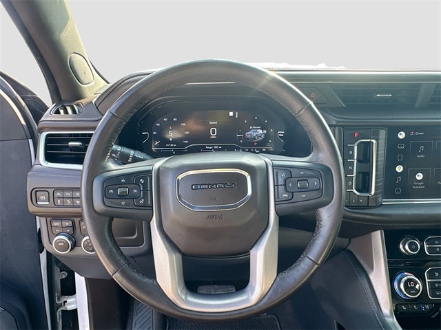 4WD, 14 Speakers, 15`` Diagonal Multi-Color Head-Up Display, 2 Presets For Outside Rearview Mirrors, 3 Years of GMC Connected Services, 3.23 Rear Axle Ratio, 3rd Row 60/40 Power-Folding Split-Bench Seat, 3rd row seats: split-bench, 4-Wheel Disc Brakes, ABS brakes, Adaptive suspension, Air Conditioning, Alloy wheels, AM/FM radio: SiriusXM with 360L, AM/FM Stereo, Apple CarPlay/Android Auto, Auto High-beam Headlights, Auto-dimming door mirrors, Auto-dimming Rear-View mirror, Auto-leveling suspension, Automatic Emergency Braking, Automatic Stop/Start, Automatic temperature control, Bodyside moldings, Bose 14-Speaker Surround w/CenterPoint, Brake assist, Bright Front & Rear Door Sill Plates, Bumpers: body-color, Chrome Door Handles w/Body-Color Strip, Compass, Delay-off headlights, Driver door bin, Driver vanity mirror, Dual Exhaust System, Dual front impact airbags, Dual front side impact airbags, Dual-Pane Panoramic Power Sunroof, Electronic Stability Control, Emergency communication system: OnStar and GMC Connected Services capable, Floor Console, Following Distance Indicator, Forward Collision Alert, Four wheel independent suspension, Front & Rear Park Assist, Front anti-roll bar, Front Bucket Seats, Front Center Armrest, Front dual zone A/C, Front fog lights, Front Pedestrian Braking, Front reading lights, Fully automatic headlights, Galvano Bodyside Moldings, Garage door transmitter, Hands-Free Power Programmable Rear Liftgate, HD Surround Vision, Heads-Up Display, Heated & Ventilated Driver & Front Passenger Seats, Heated 2nd Row Outboard Position Seats, Heated door mirrors, Heated Driver & Front Passenger Seats, Heated front seats, Heated rear seats, Heated Steering Wheel, Heated steering wheel, Hill Descent Control, Illuminated entry, Inside Rear-View Auto-Dimming Mirror, IntelliBeam Automatic High Beam On/Off, Lane Change Alert w/Side Blind Zone Alert, Lane Keep Assist w/Lane Departure Warning, Leather steering wheel, License Plate Front Mounting Package, Low tire pressure warning, Magnetic Ride Control Suspension, Memory seat, Navigation System, Not Equipped w/4-Way Driver & Fr Pass Pwr Lumbar, Not Equipped w/Steering Column Lock, Occupant sensing airbag, Outside Heated Power-Adjustable Mirrors, Outside temperature display, Overhead airbag, Overhead console, Panic alarm, Passenger door bin, Passenger vanity mirror, Perforated Leather Seating Surfaces, Power door mirrors, Power driver seat, Power Liftgate, Power passenger seat, Power Release 2nd Row Bucket Seats, Power steering, Power Tilt & Telescopic Steering Column, Power windows, Power-Retractable Assist Steps, Preferred Equipment Group 5SA, Rain sensing wipers, Rear air conditioning, Rear anti-roll bar, Rear Cross Traffic Alert, Rear Pedestrian Alert, Rear reading lights, Rear window defroster, Rear window wiper, Remote keyless entry, Roof rack: rails only, Safety Alert Seat, Security system, SiriusXM w/360L, Speed control, Speed-sensing steering, Split folding rear seat, Spoiler, Start/Stop System Disable Button, Steering wheel memory, Steering wheel mounted audio controls, Tachometer, Telescoping steering wheel, Tilt steering wheel, Traction control, Trip computer, Turn signal indicator mirrors, Universal Home Remote, Variably intermittent wipers, Ventilated front seats, Voltmeter, Wheel Locks (Set of 4) (LPO), Wheels: 20`` x 9`` 6-Spoke Polished Aluminum, Wheels: 22`` x 9`` Bright Machined Aluminum, Wireless Charging, 4WD. Recent Arrival!