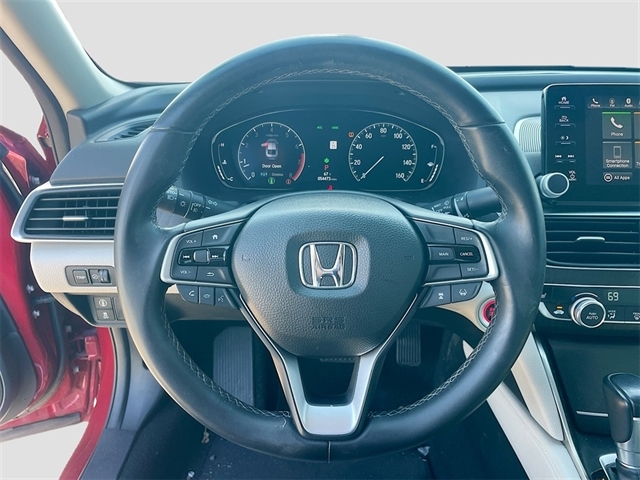 Leather, 10 Speakers, 17`` Machine-Finished Alloy Wheels, 4-Wheel Disc Brakes, ABS brakes, Air Conditioning, Alloy wheels, AM/FM radio: SiriusXM, Apple CarPlay/Android Auto, Auto High-beam Headlights, Auto-dimming Rear-View mirror, Automatic temperature control, Blind Spot Information (BSI) System warning, Brake assist, Bumpers: body-color, Delay-off headlights, Driver door bin, Driver vanity mirror, Dual front impact airbags, Dual front side impact airbags, Electronic Stability Control, Emergency communication system: HondaLink, Exterior Parking Camera Rear, Four wheel independent suspension, Front anti-roll bar, Front Bucket Seats, Front Center Armrest, Front dual zone A/C, Front fog lights, Front reading lights, Fully automatic headlights, Garage door transmitter: HomeLink, Heated door mirrors, Heated Front Bucket Seats, Heated front seats, Illuminated entry, Knee airbag, Leather Shift Knob, Leather steering wheel, Leather-Trimmed Seats, Low tire pressure warning, Memory seat, Occupant sensing airbag, Outside temperature display, Overhead airbag, Overhead console, Panic alarm, Passenger door bin, Passenger vanity mirror, Power door mirrors, Power driver seat, Power moonroof, Power passenger seat, Power steering, Power windows, Radio data system, Radio: 450-Watt AM/FM/HD Premium Audio System, Rear anti-roll bar, Rear seat center armrest, Rear window defroster, Remote keyless entry, Security system, Speed control, Speed-sensing steering, Speed-Sensitive Wipers, Split folding rear seat, Steering wheel mounted audio controls, Tachometer, Telescoping steering wheel, Tilt steering wheel, Traction control, Trip computer, Turn signal indicator mirrors, Variably intermittent wipers, Leather. Recent Arrival!