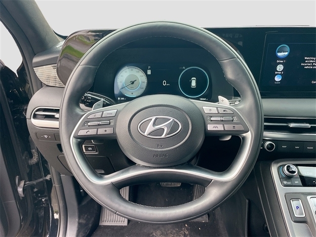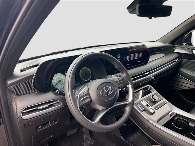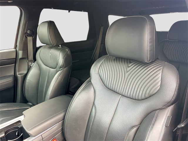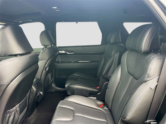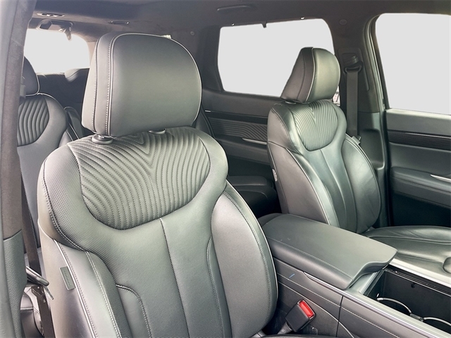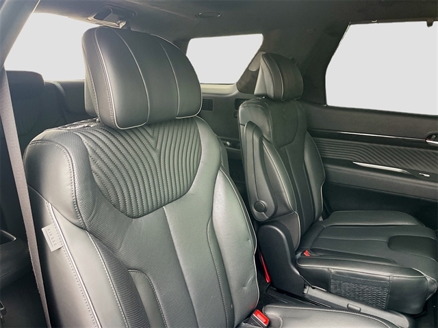 12 Speakers, 3.510 Axle Ratio, 3rd row seats: split-bench, 4-Wheel Disc Brakes, ABS brakes, Air Conditioning, Alloy wheels, AM/FM radio: SiriusXM, Apple CarPlay & Android Auto, Auto High-beam Headlights, Auto-dimming door mirrors, Auto-dimming Rear-View mirror, Auto-leveling suspension, Automatic temperature control, Brake assist, Bumpers: body-color, Cargo Cover/Screen, Cargo Tray, Carpeted Floor Mats, Compass, Delay-off headlights, Driver door bin, Driver vanity mirror, Dual front impact airbags, Dual front side impact airbags, Electronic Stability Control, Emergency communication system: Blue Link Connected Car Service (3-year complimentary subscription), Exterior Parking Camera Rear, Four wheel independent suspension, Front anti-roll bar, Front Bucket Seats, Front Center Armrest, Front dual zone A/C, Front reading lights, Fully automatic headlights, Garage door transmitter: HomeLink, harman/kardon® Speakers, Heads-Up Display, Heated & Ventilated Front Bucket Seats, Heated door mirrors, Heated front seats, Heated rear seats, Heated steering wheel, Illuminated entry, Knee airbag, Low tire pressure warning, Memory seat, Navigation System, Occupant sensing airbag, Option Group 01, Outside temperature display, Overhead airbag, Overhead console, Panic alarm, Passenger door bin, Passenger vanity mirror, Power door mirrors, Power driver seat, Power Liftgate, Power moonroof, Power passenger seat, Power steering, Power windows, Premium Nappa Leather Seat Trim, Radio data system, Radio: AM/FM/MP3 Premium Audio System, Rain sensing wipers, Rear air conditioning, Rear anti-roll bar, Rear audio controls, Rear Bumper Applique, Rear reading lights, Rear side impact airbag, Rear window defroster, Rear window wiper, Reclining 3rd row seat, Remote keyless entry, Security system, Speed control, Speed-sensing steering, Splash Trim, Split folding rear seat, Spoiler, Steering wheel mounted audio controls, Tachometer, Telescoping steering wheel, Tilt steering wheel, Traction control, Trip computer, Turn signal indicator mirrors, Variably intermittent wipers, Ventilated front seats, Ventilated rear seats, Wheels: 20`` x 7.5J Calligraphy Exclusive Alloy. Recent Arrival!
