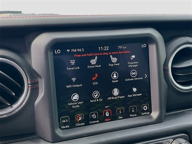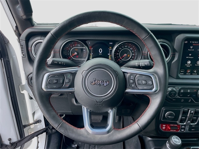 1-Year SiriusXM Guardian Trial, 240 Amp Alternator, 4-Wheel Disc Brakes, 4.10 Rear Axle Ratio, 5-Year SiriusXM Travel Link Service, 700 Amp Maintenance Free Battery, 8 Speakers, 8.4`` Radio & Premium Audio Group, 97 mph Maximum Speed Calibration, ABS brakes, Advanced Safety Group, Air Conditioning, Alloy wheels, Alpine Premium Audio System, AM/FM radio: SiriusXM, Apple CarPlay/Android Auto, Automatic temperature control, Auxiliary Switch Group, Blind Spot & Cross Path Detection, Bluetooth Wireless Speaker, Body Color 3-Piece Hard Top, Body Color Fender Flares (2-Piece), Brake assist, Cargo Group w/Trail Rail System, Cold Weather Group, Compass, Daytime Running Lamps LED Accents, Delay-off headlights, Driver door bin, Driver vanity mirror, Dual front impact airbags, Dual front side impact airbags, Electronic Stability Control, Emergency/Assistance Call, Exterior 115V AC Outlet, Freedom Panel Storage Bag, Front anti-roll bar, Front Bucket Seats, Front Center Armrest w/Storage, Front dual zone A/C, Front fog lights, Front LED Fog Lamps, Front reading lights, Fully automatic headlights, Garage door transmitter, Hardtop Headliner, Heated door mirrors, Illuminated entry, Integrated Off-Road Camera, Integrated roll-over protection, Leather steering wheel, LED Lighting Group, Low tire pressure warning, No Soft Top, Occupant sensing airbag, Outside temperature display, Panic alarm, ParkView Rear Back-Up Camera, Passenger door bin, Passenger vanity mirror, Performance Suspension, Power door mirrors, Power steering, Power windows, Premium Cloth Low-Back Bucket Seats, Radio data system, Radio: Uconnect 4 w/7`` Display, Radio: Uconnect 4C Nav w/8.4`` Display, Rear anti-roll bar, Rear reading lights, Rear Window Defroster, Remote keyless entry, Remote Proximity Keyless Entry, Remote Start System, Roll-Up Tonneau Cover, Safety Group, Security system, SiriusXM Traffic Plus, Speed control, Split folding rear seat, Spray In Bedliner, Steel Front Bumper, Steering wheel mounted audio controls, Tachometer, Telescoping steering wheel, Tilt steering wheel, Traction control, Trailer Tow Package, Trip computer, Variably intermittent wipers, Voltmeter, Wheels: 17`` x 7.5`` Granite Crystal Aluminum. Recent Arrival!