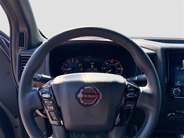 17`` Painted Alloy Wheels, 3.692 Axle Ratio, 4-Wheel Disc Brakes, 6 Speakers, ABS brakes, Air Conditioning, Alloy wheels, AM/FM radio: SiriusXM, Anti-whiplash front head restraints, Automatic temperature control, Brake assist, Bumpers: body-color, Compass, Delay-off headlights, Driver door bin, Driver vanity mirror, Dual front impact airbags, Dual front side impact airbags, Electronic Stability Control, Electronic Tailgate Lock, Emergency communication system, Fender Premium Audio System w/10 Speakers, Front anti-roll bar, Front Bucket Seats, Front Center Armrest, Front dual zone A/C, Front fog lights, Front reading lights, Front wheel independent suspension, Fully automatic headlights, Illuminated entry, Knee airbag, Leather Shift Knob, Leather steering wheel, Low tire pressure warning, Navigation System, NissanConnect featuring Apple CarPlay and Android Auto, Occupant sensing airbag, Off-Road Style Step Rails, Overhead airbag, Overhead console, Panic alarm, Passenger door bin, Passenger vanity mirror, Power door mirrors, Power driver seat, Power steering, Power windows, PRO Embroidered Premium Cloth Seat Trim, PRO-X Mud Flaps, Radio data system, Radio: 1CD/SXM/AM/FM/AUX/USB/MP3/WMA Audio System, Rear anti-roll bar, Rear seat center armrest, Rear side impact airbag, Rear step bumper, Remote keyless entry, Security system, Speed control, Speed-sensing steering, Split folding rear seat, Steering wheel mounted audio controls, Tachometer, Tilt steering wheel, Traction control, Trip computer, Variably intermittent wipers, Voltmeter. Recent Arrival!
