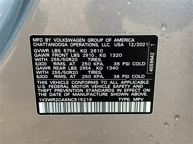 CARFAX One-Owner. Pyrite Silver Metallic 2022 Volkswagen Atlas 3.6L V6 SE w/Technology FWD 8-Speed Automatic with Tiptronic 3.6L VR6